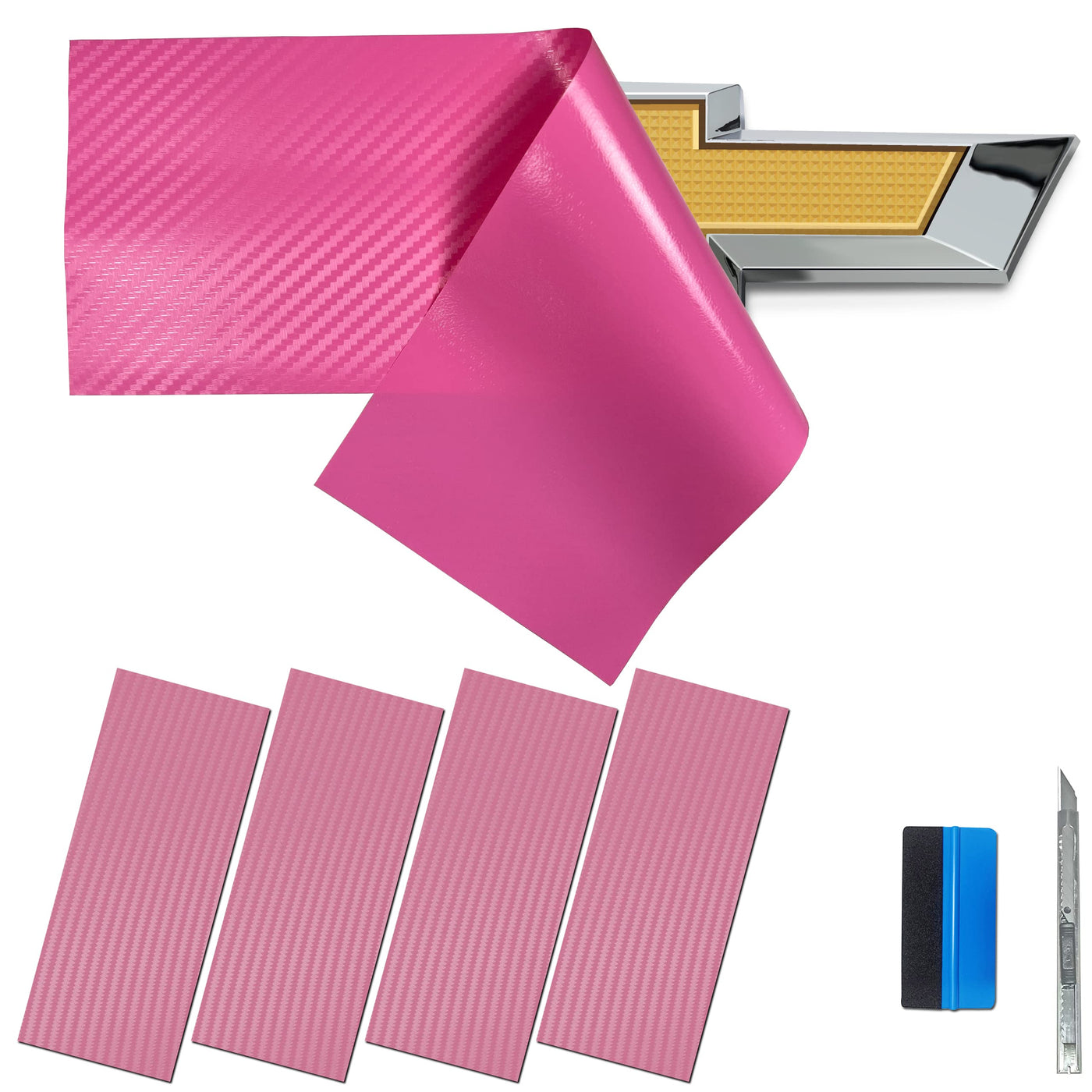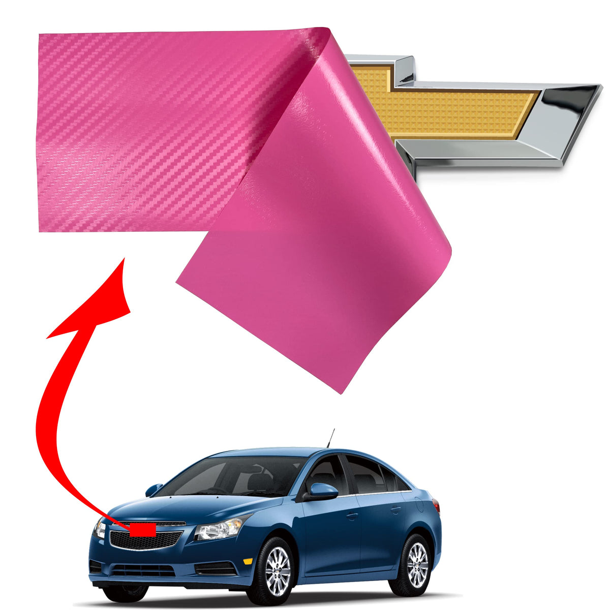 LZLRUN Compatible with Bowtie Logo Wrap Stickers Cut-Your-Own Emblem Overlay DIY Decals for Chevy (11.8 Inch x 4 Inch) (Pink Car
