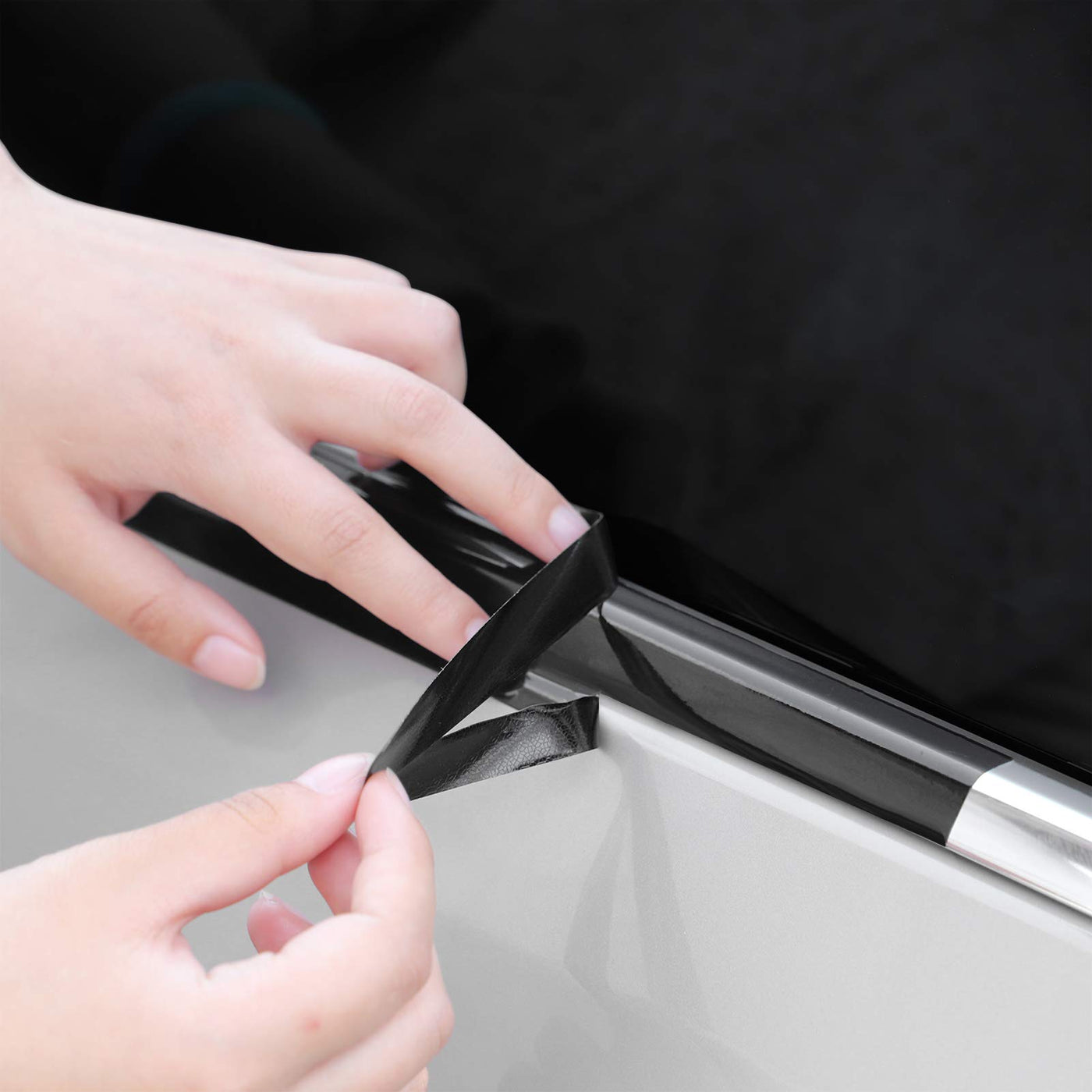 Q: What surfaces can I apply the LZLRUN vinyl wrap to?A: The LZLRUN vinyl wrap is designed for easy application on both flat and curved surfaces, making it suitable for car window trims and door trims.