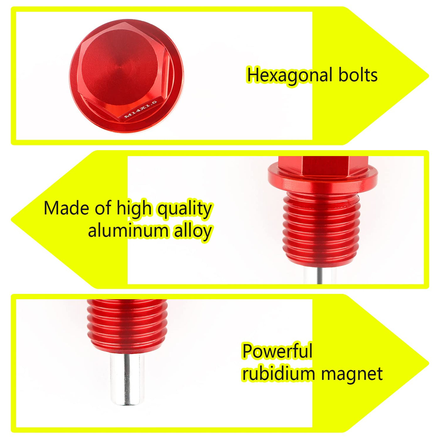 M14 X1.5 Magnetic Oil Drain Plug With Oil Drain Plug Gaskets Car Parts Kit Compatible With Most Ford,Gm,Hyundai,Kia And Accord,Crv,Civic,Pilot,Odyssey (Red)