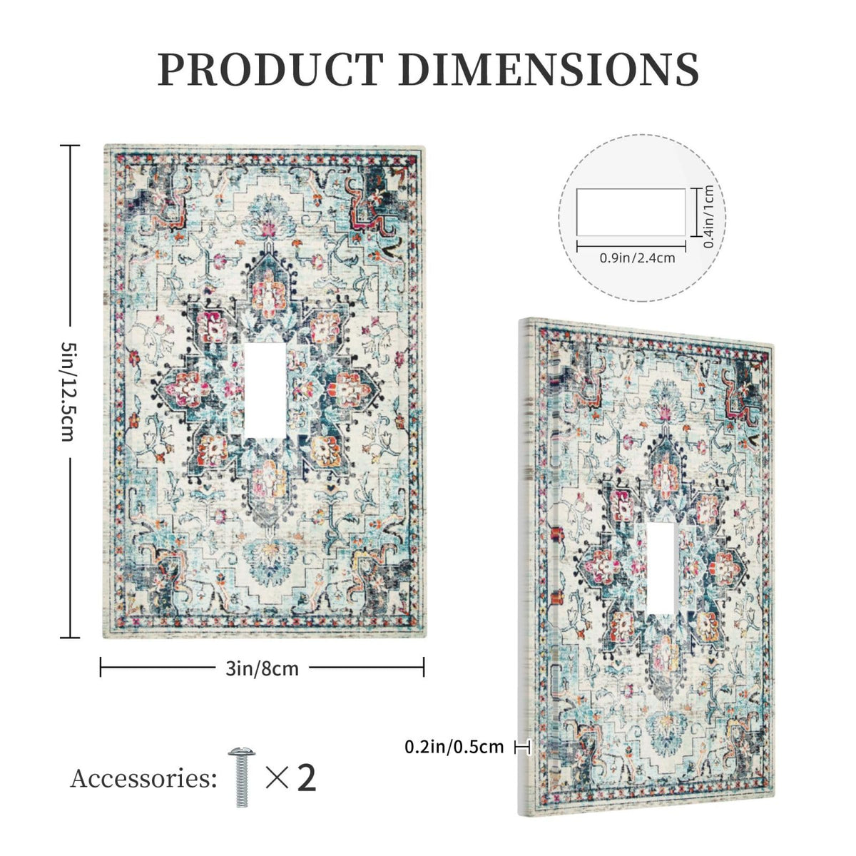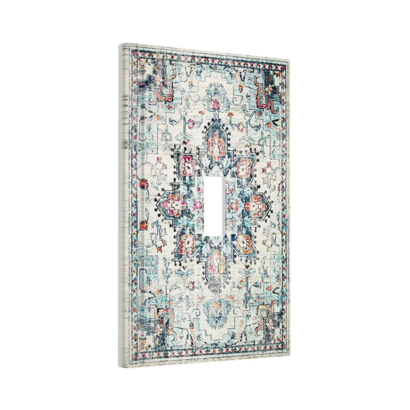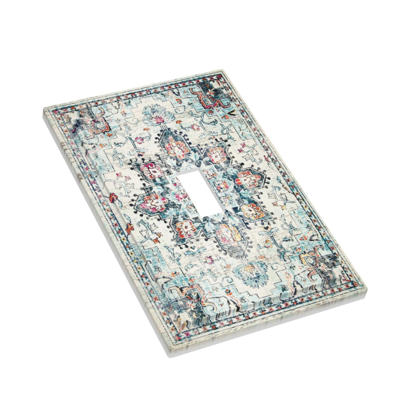Madison Collection Cream Blue Boho Chic Medallion Single Toggle Light Switch Covers Decorative 1 Gang Wall Plates Cover Electrical Device Switchplate Faceplate For Farmhouse Bathroom
