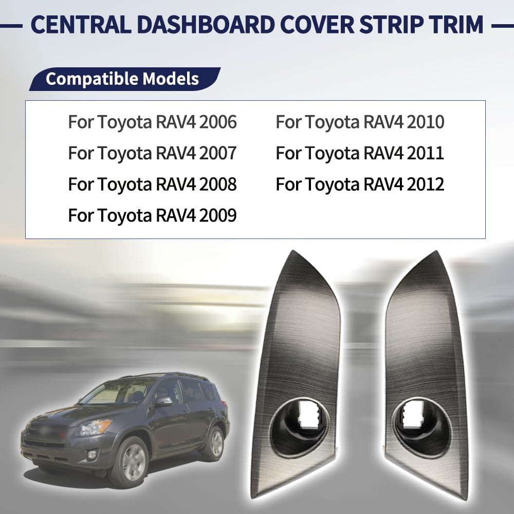 Compatible with Toyota RAV4: Fit for RAV4 Base Sport Utility 4-Door 2.4L 2006-2008 Fit for RAV4 Base Sport Utility 4-Door 2.5L 2009-2012 Fit for RAV4 Base Sport Utility 4-Door 3.5L 2006-2012 Fit for RAV4 EV Sport Utility 4-Door BATTERY EV (EV/BEV) Fit for RAV4 Limited Sport Utility 4-Door 2.4L 2006-2008 Fit for RAV4 Limited Sport Utility 4-Door 2.5L 2009-2012 Fit for RAV4 Limited Sport Utility 4-Door 3.5L 2006-2012 Fit for RAV4 Sport Sport Utility 4-Door 2.4L 2006-2008 Fit for RAV4 Sport Sport Utility 4-Door 2.5L 2009-2012 Fit for RAV4 Sport Sport Utility 4-Door 3.5L 2006-2012 Replace Part Number: 55413-42070-B0 55412-42060-B0 55413-42070 55412-42060 Package List: 2 X Central Dashboard Cover Strip Trim,One Left And One Right Satisfied Service: We will provide one year's after-sales service and warranty,if you have any questions,please feel free to contact us,we will do our best to bring you a better shopping experience.
