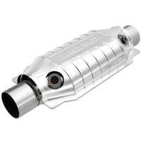 MagnaFlow universal catalytic converters form the basic building blocks for a comprehensive line of direct-fit applications. The main benefit of the universal catalytic converter is that one unit may cover a wide variety of vehicle makes and models. Installing universal converters often requires the use of welding, cutting and tube bending equipment that is readily available to most professional installers. All federal catalytic converters meet EPA requirements. Federal catalytic converters are not legal for sale, installation or use on vehicles registered in the state of California.