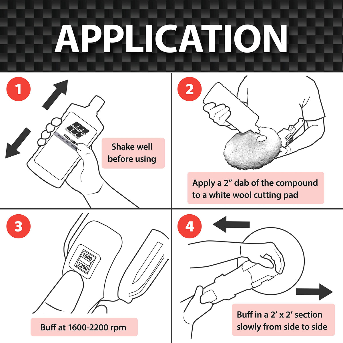 Tru-Grit is a versatile buffing compound formulated for aged and fresh paint. The advanced formula contains special diminishing abrasives that combine to provide both aggressive buffing capabilities and polishing properties. Use Tru-Grit to repair paint defects and remove deep scratches and heavy oxidation, as well as environmental contaminants from any automotive, marine or industrial coating.
