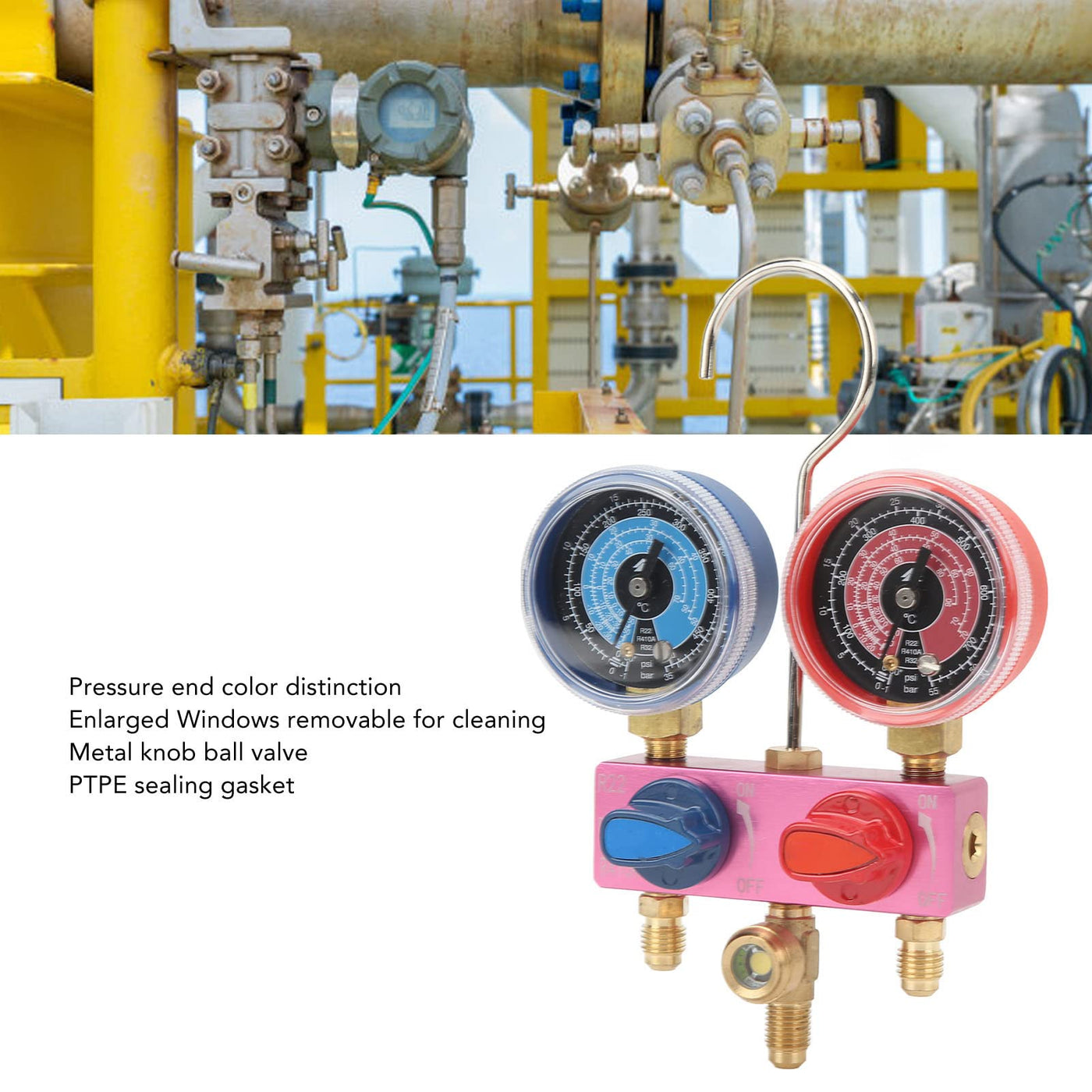 Manifold Gauge, Mini Fluoride Refrigerant Pressure Gauge For R22, R32, R410A Refrigerant, G1/4 Metal Knob Air Conditioning Tool,