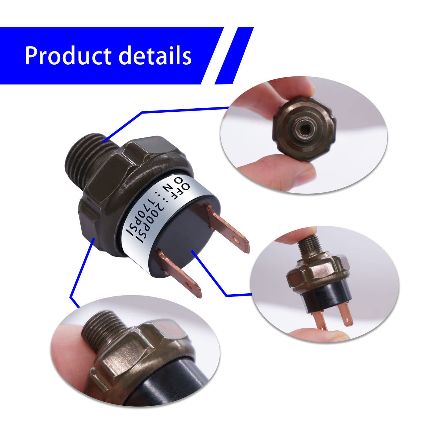 Mankk Air Pressure Switch 170-200 Psi Thread 1/4'' Npt 24V 12V Dc Air Compressor Pressure Switch For Air Horn Train 170-200-1/4'