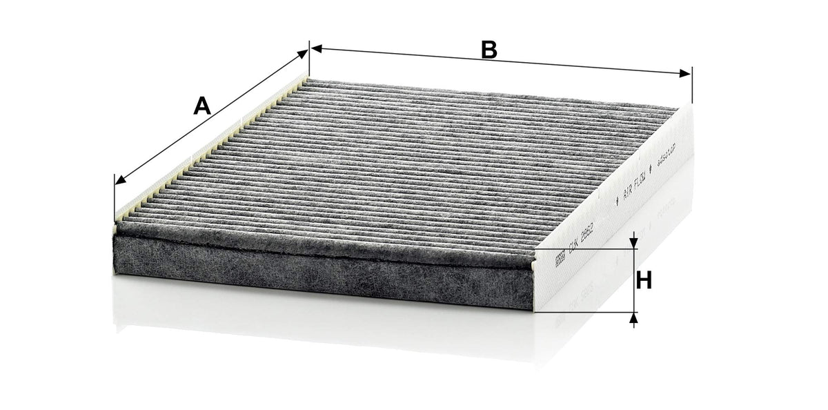 Q: What benefits does the activated carbon in the Mann Filter CUK 2862 provide?A: The activated carbon layer in the Mann Filter CUK 2862 cabin air filter effectively captures harmful gases and eliminates unpleasant odors, providing cleaner air inside your vehicle. It helps filter out pollutants like ozone, nitrogen oxides, and sulfur dioxide, ensuring a healthier driving environment.