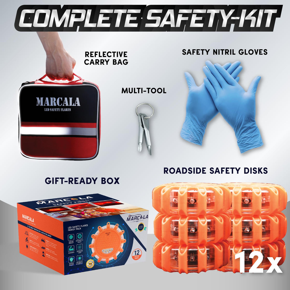 MARCALA Value Family 12-Pack Road Flare | Safety Flare Emergency Lights | The only COMPLETE Safety Kit w/ 3 Bonus Items! | Feel safer on the road! led road flares emergency disc, roadside safety disc, 1tac safety disc, itac roadside safety disc, safety puck, roadside flares led, road emergency light, led road flares emergency, road safety lights, road flare led, led roadside emergency lights, emergency road lights, road side flares, led roadside flare, safety emergency light, emergency road flares, led car flares, led roadside flares, road safety flares, emergency flares for car, electronic flares cars, halo safety flare, roadside light, roadside emergency light, esafety lights, led roadside flare disc magnetic, safety lights for cars, roadside emergency disk, safety lights, car emergency lights, led flairs, roadside safety light, haylo safety flares, emergency roadside safety disc, car flare, safety puck lights, auto safety lights, electronic road flare, led safty flares, roadside discs, emergency light for car, safety disk lights, road flates, safety disc lights, roadside safety discs magnetic, halo saftey flare, halo safety flares road, roadside emergency flares, haylo safety flare magnetic, hal safety flare, auto emergency lights, haylo safety flare, itac safety lights, fred light, magnetic emergency lights for vehicles, haylo flare, safty lights, roadside safty flare, roadside safety led, emergency auto light, auto emergency light, roadside emergency lights, emergency roadside discs, roadside safety disk, traffic safety light, traffic flares, wagan fred pro flashing roadside emergency disc led flare pro, itac lights, car safety lights, fred light emergency beacon, wagan fred light, magnetic led flares, fred flare, haylo emergency safety flares, auto flares safety, road safety, led road flares emergency lights, led flares magnetic, wagan fred, heliar led road flares emergency, auto safety flares, emergency road flashers, roadside led, halo safety light, led road