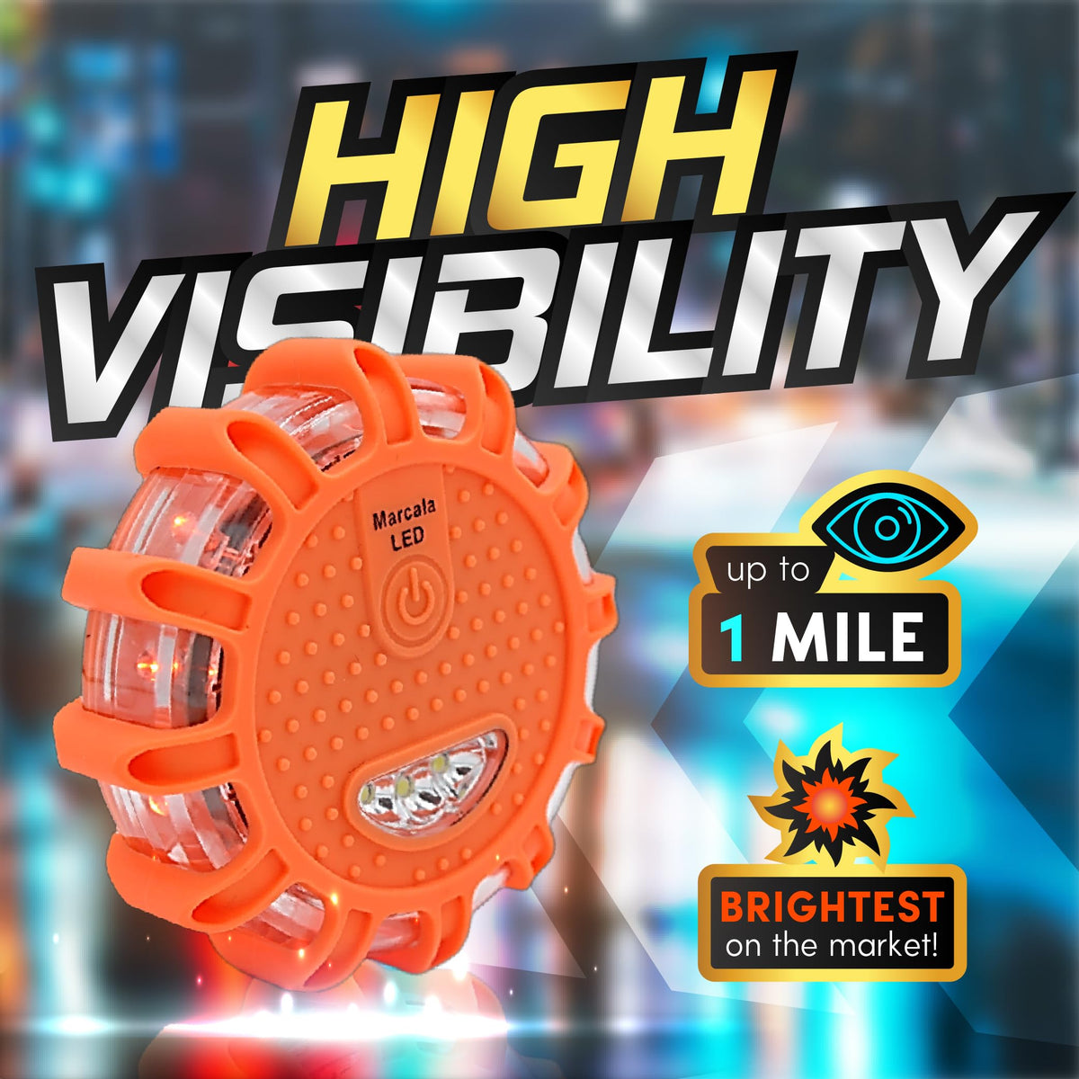 Marcala Led Road Flares 6-Pack | Roadside Emergency Kit With Flares | Roadside Safety Disc, Dot Compliant Led Safety Flares | Ba