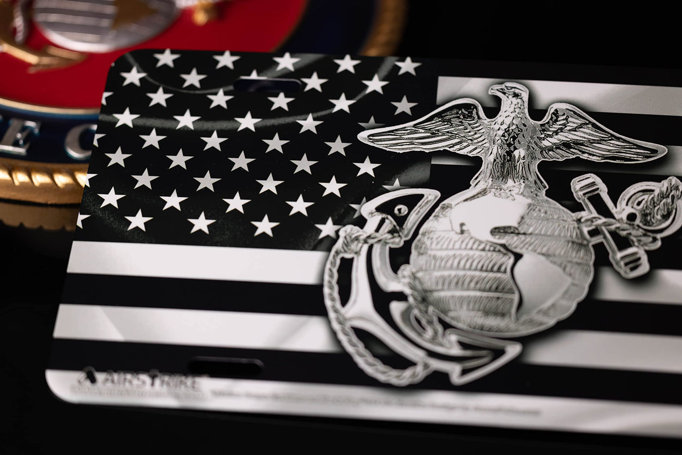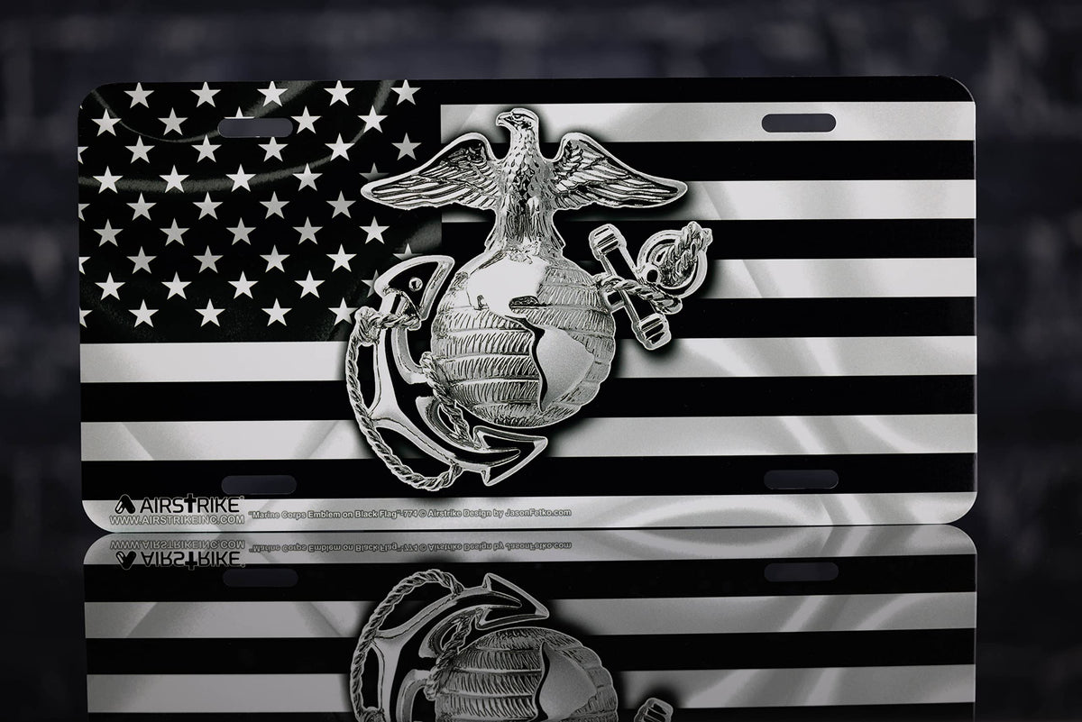 Marine Corps License Plate, Usmc License Plate, Marine License Plate, Usmc License Plates For Front Of Car, Usmc Black Flag License Plate, Usmc Plate, Made In Usa By Airstrike (Made Of Metal)-774