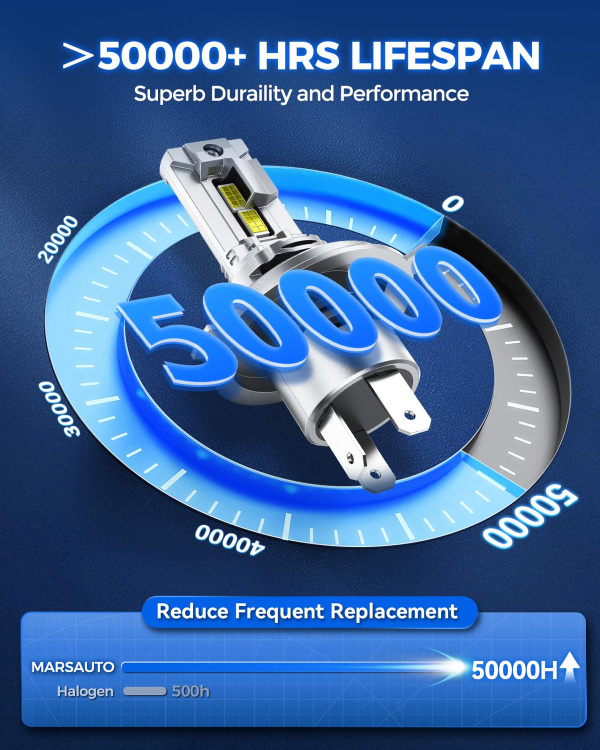 Q: What is the lifespan of the Marsauto H4 fog bulbs?A: The Marsauto H4 fog bulbs have a long lifespan of up to 50,000 hours, thanks to their durable construction and efficient cooling design.