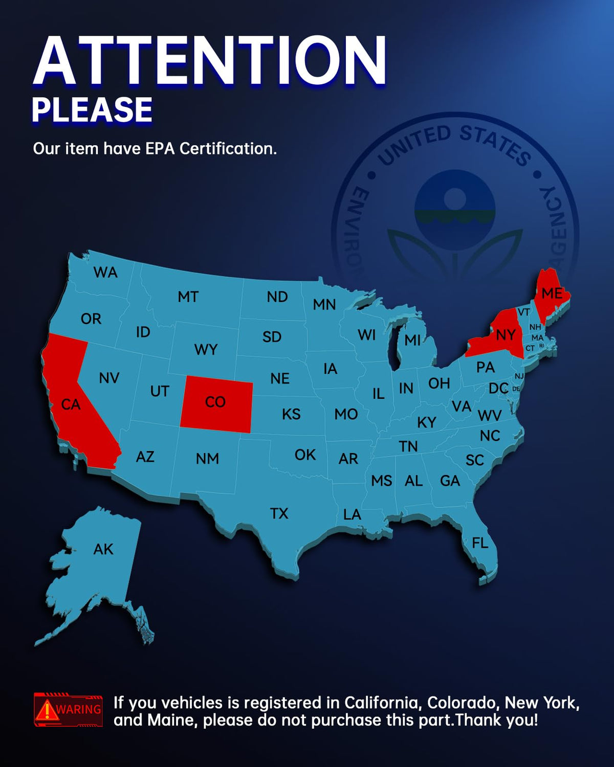 [WIDE COMPATIBILITY] --- Catalytic Converter Compatible with 2012-2018 Wrangler 3.6L .These free-flow catalytic converters have bolt-on connections and flange to flange design for effortless installation. | [HIGH FLOW PERFORMANCE ] --- Our catalytic converters are built to meet OEM specifications and have EPA certification. They also feature a high flow design to increase conversion efficiency and vehicle power without sacrificing flow rate. | [STAINLESS STEEL OUT SHELL] --- The high flow catalytic converters with heavy-duty stainless steel construction feature maximum durability. Firmly welded connections can withstand high temper and pressures for longer service life. | [FLANGE TO FLANGE DESIGN] --- These free-flow catalytic converters have bolt-on connections and flange to flange design for effortless installation. They're also complete with full accessories as gaskets and hardware, facilitating your replacement. | [COMPLIANCE WITH OBD III] --- The direct-fit catalytic converters are compliant with OBD III Standards but not with CARB. Thus, they can be used in most states except California& New York, not legal for use on vehicles required to meet CA emission standards.
