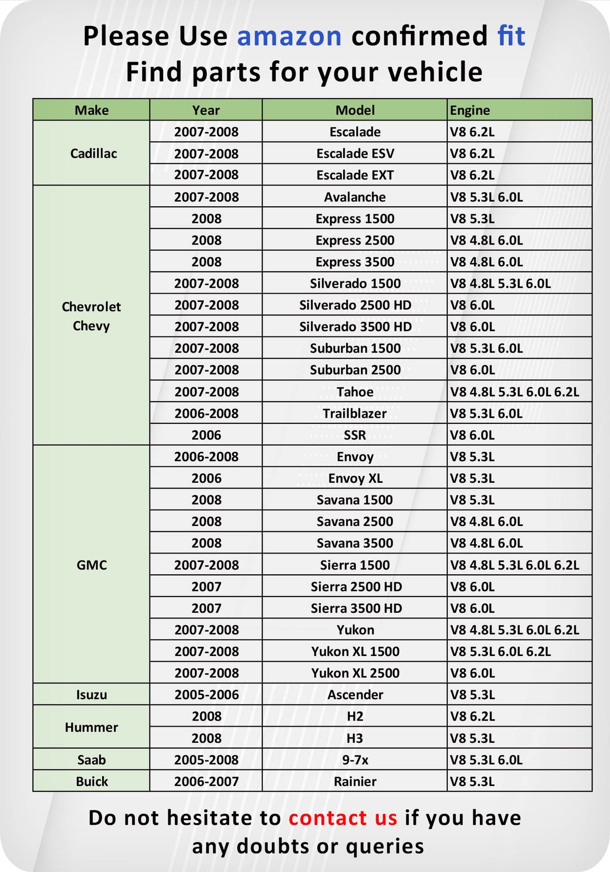 Q: What vehicles are compatible with the Marsram Electronic Throttle Body?A: The Marsram Electronic Throttle Body is compatible with various models including 2007-2008 Chevrolet Avalanche, Express, Silverado, Suburban, Tahoe, GMC Envoy, Sierra, Yukon, Cadillac Escalade, and others. For a complete list, please check the product description for specifics on engine sizes and models.