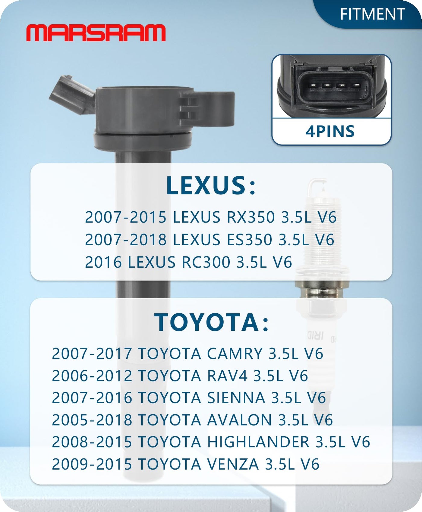 Marsram Uf487 Ignition Coil Pack & Double Iridium Spark Plug Fit For Toyota Lexus 2005-2018 Camry Highlander Avalon Rav4 Sienna