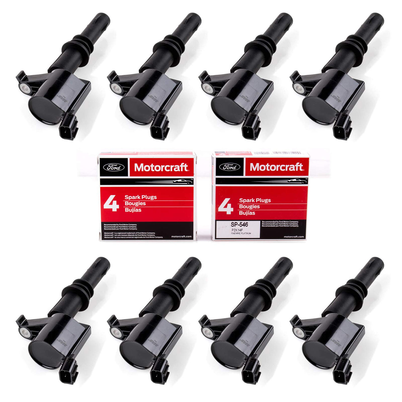 MAS Set of 8 Platinum Spark Plug and 8 Straight Ignition Coil Pack Compatible with Ford F-150 Expedition F-250 Super Duty F-350