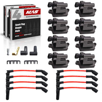 MAS Set of 8 Square Ignition Coil & 8 Iridium Spark Plug & Red Wires Set Compatible with Silverado Suburban GMC Hummer Avalanche