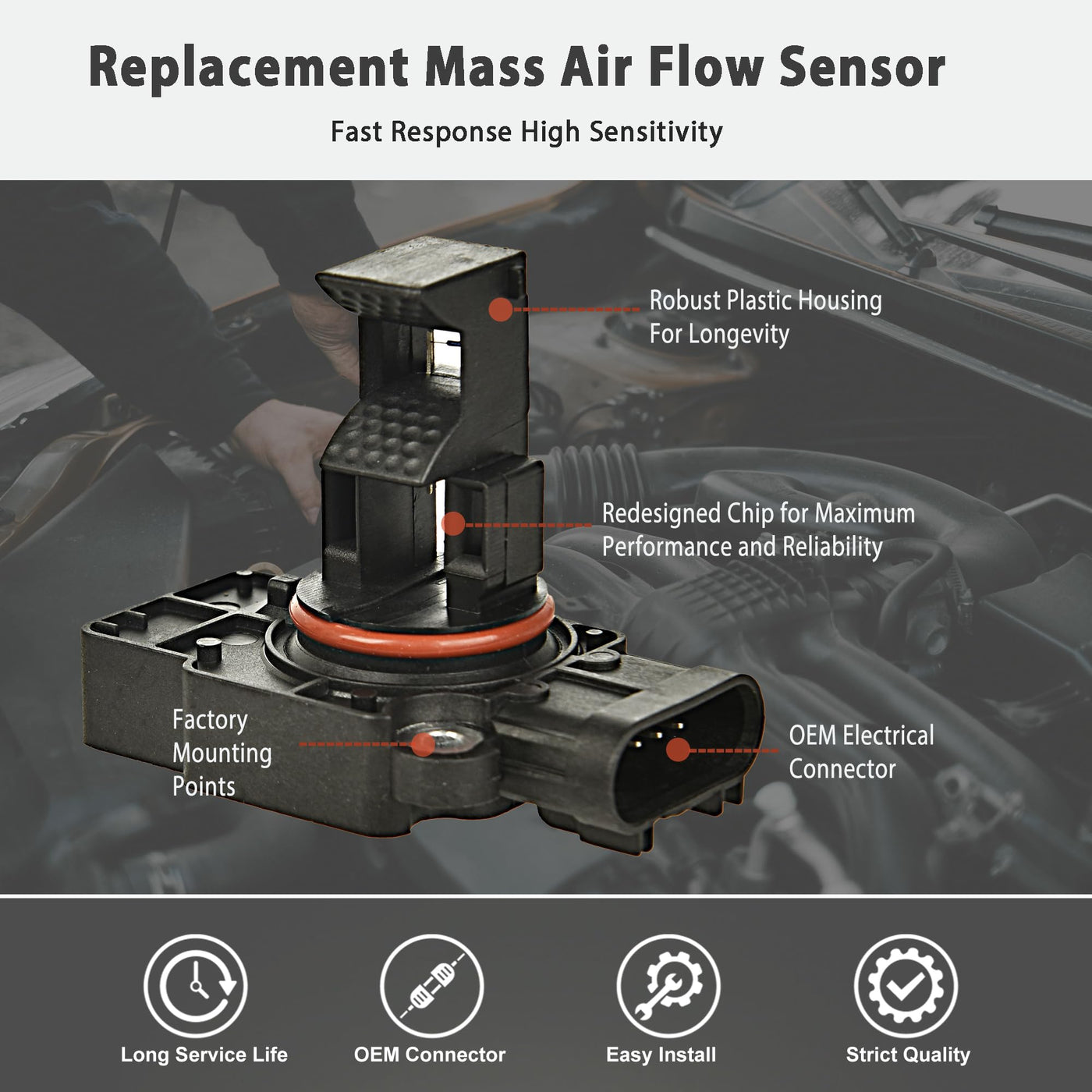Q: What part numbers does this Mass Air Flow Sensor replace?A: This Mass Air Flow Sensor replaces several part numbers including 10393948, 23256991, AF10060, MAF300, 917-1067, and 5S13836. Ensure compatibility with your vehicle's make and model before purchasing.