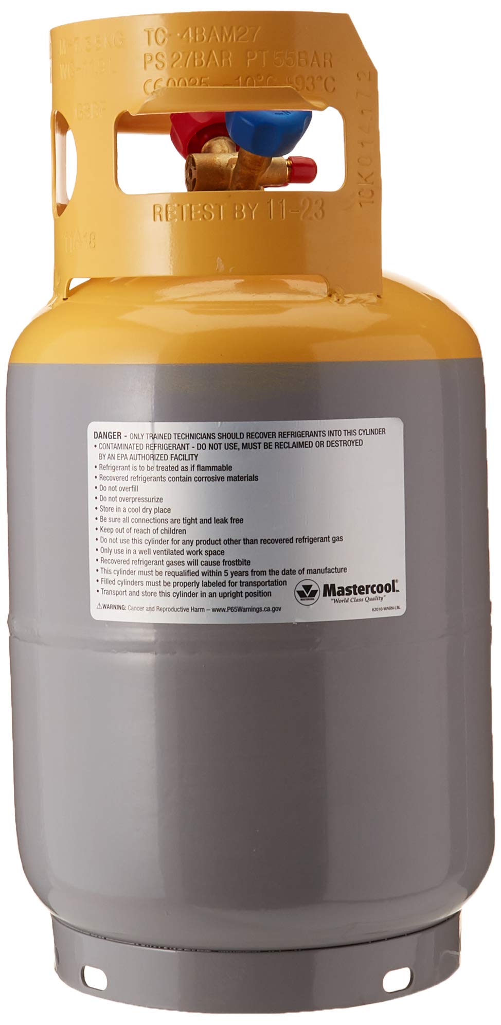 Mastercool 62010 Gray/Yellow 30 Lb Refrigerant Recovery Tank Without Float Switch And Fl-M (7/16-20)