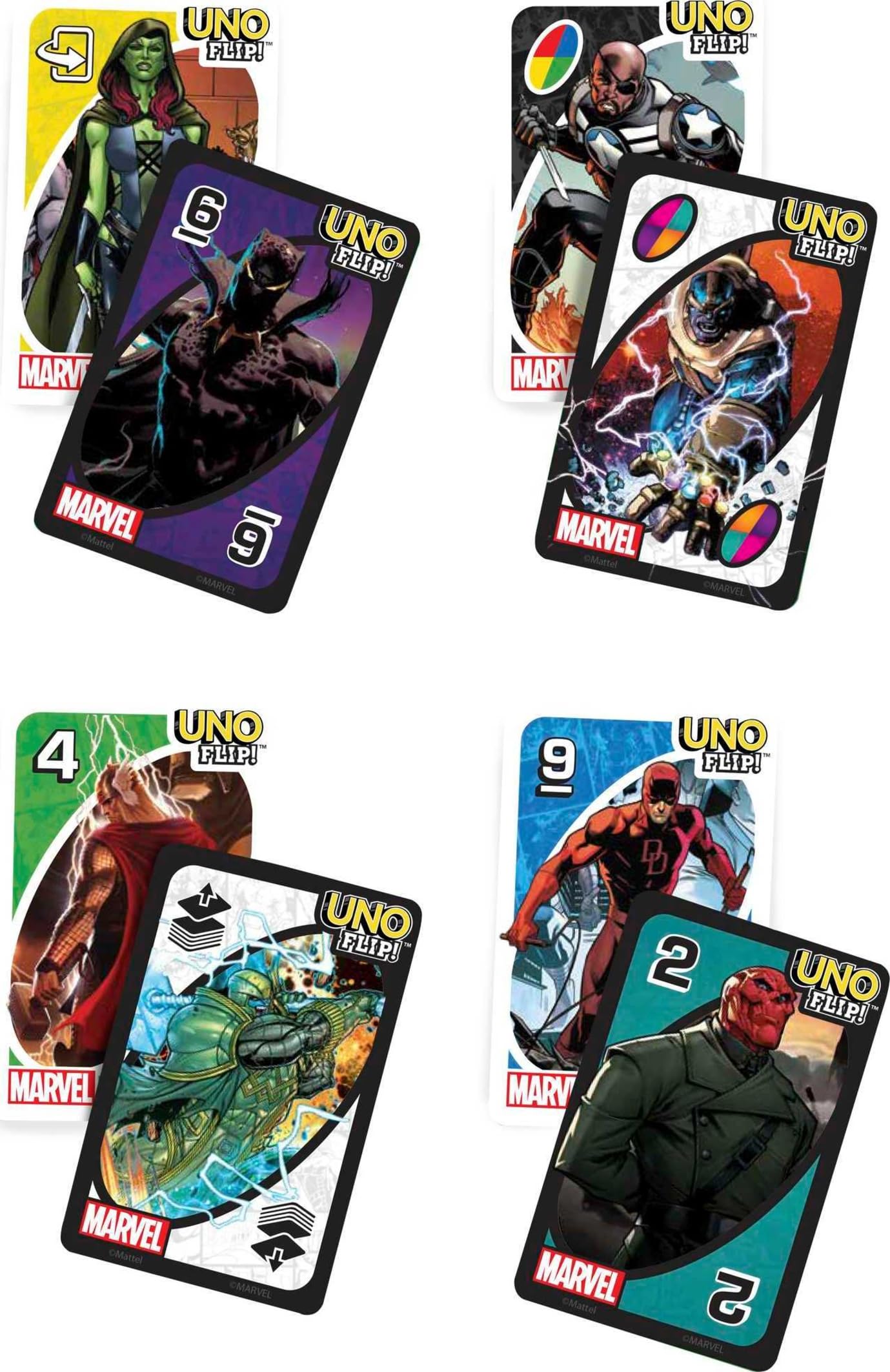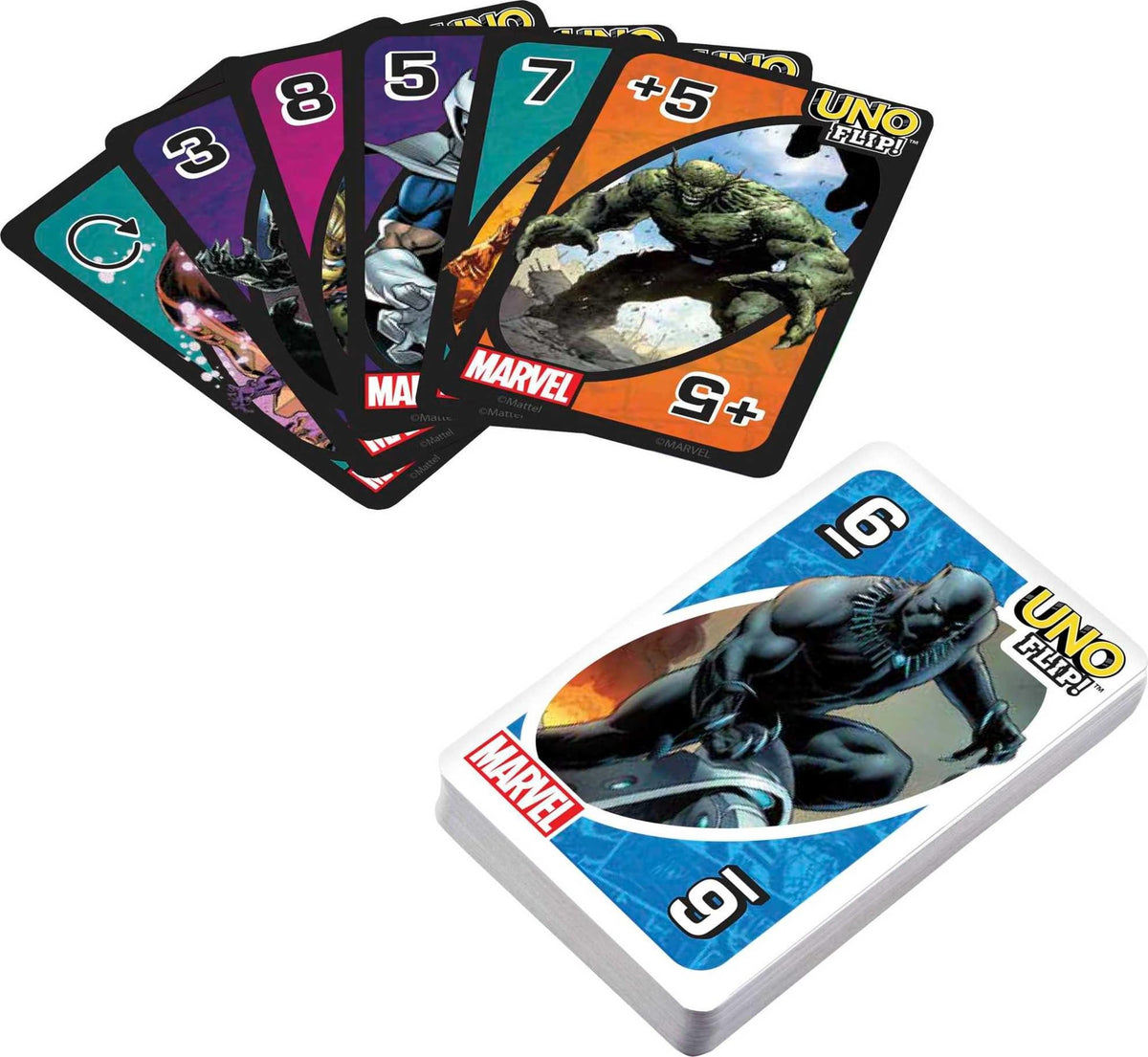 Mattel Games Uno Flip! Marvel Card Game For Kids, Adults & Family Night With Double-Sided Cards, Heroes Vs. Villains