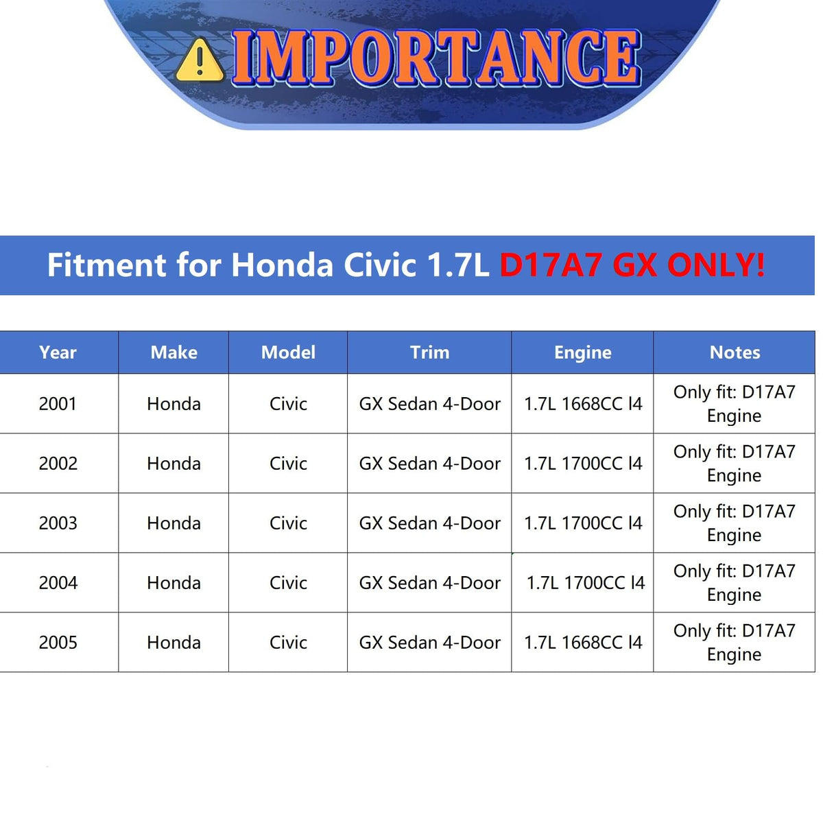 SPECIFICATION: Brand New and High Quality Oxygen Sensor Direct Plug-In Replacement OEM PART NUMBER 234-4092,234-4123 COMPATIBLE MODELS Make Model Engine Year Notes Replacement for HONDA CIVIC L4-1.7 2005-2001 D17A7 Engine ;1Pcs Upstream + 1Pcs Downstream