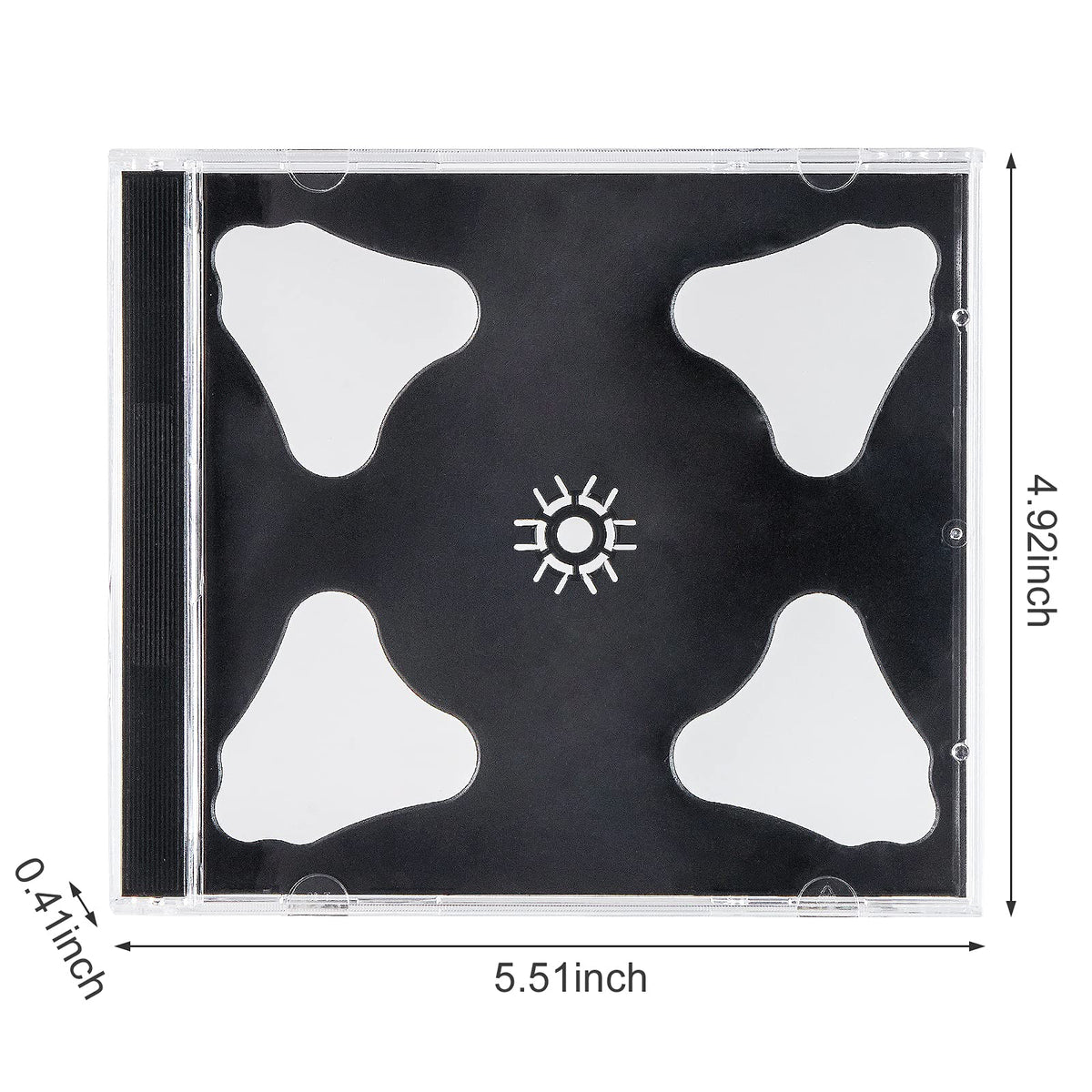 Maxtek 10.4 mm Standard Double (2 Discs Capacity) Clear CD Jewel Case with Black Tray, 25 Pack