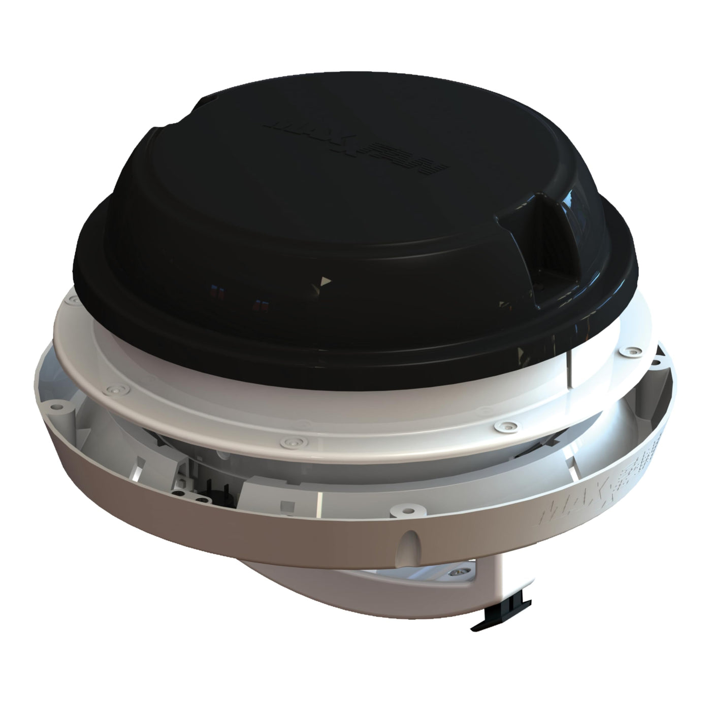 Maxxair Maxxfan Dome 6 Round 12V Ventilation Fan - Compact Solution For Rooftop Or Sidewall Ventilation, Exhaust Only, Removable Screens, Fan Guard Rain Shield, Moisture Control, Black (00-03812B)