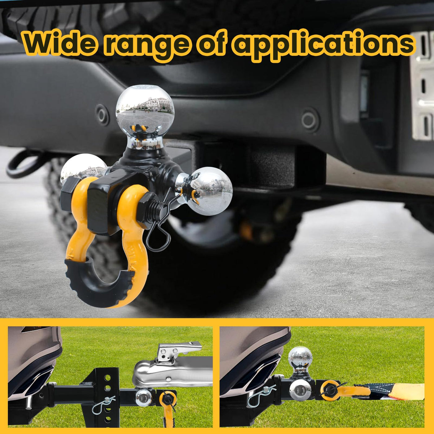 Enhance Your Towing Setup With The Heavy Duty Trailer Hitch Tri Ball Mount. Featuring Three Hitch Ball Sizes (1-7/8'', 2'', And 2-5/16''), A Rotatable Tow Shackle, And A 3/4'' D-Ring, This Versatile Mount Fits A 2'' Receiver Class 3 And Class 4 And Supports Up To 12,000 Lbs. Perfect For A Variety Of Trailers, It Offers Durability And Reliability For All Your Towing Needs. The Shank Features A Rise And Drop Range Of 5'' Each, With Increments Of 1.12''. Perfect For Any Towing Task, This Tri Ball Mount Is A Must-Have For Serious Haulers And Outdoor Enthusiasts. Ensure Safe And Secure Towing On Every Journey With This High-Capacity, Multi-Functional Trailer Hitch.
