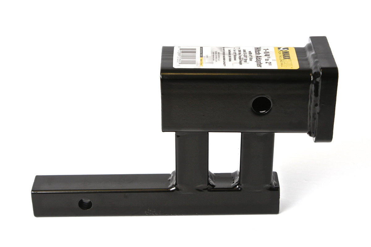 MaxxHaul 70355: This hitch adapter conveniently converts all 1-1/4'' Class II hitch receivers with a 1/2'' diameter pin hole into a 2'' Class II hitch receiver with a 5/8'' diameter pin hole allowing for the option to utilize it for a 4'' rise in height or for a 3-3/8'' in height drop. The entire unit is constructed in full steel weighing in at a solid 10.4lbs and is coated in a powder coat finish to resist both rust and corrosion. The shank is crafted of solid steel ensuring a sturdy connection into a 1-1/4'' hitch. This 2'' x 2'' hitch adapter is perfect for bike racks, cargo carriers, hitch steps and the like that require a standard 2'' hitch receiver for the desired device to attach onto. This product is not designed for towing. It's maximum tongue weight load rating is 350lbs.