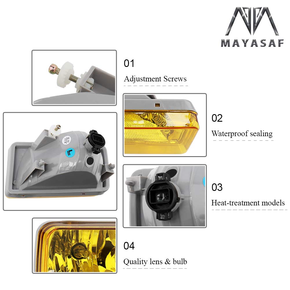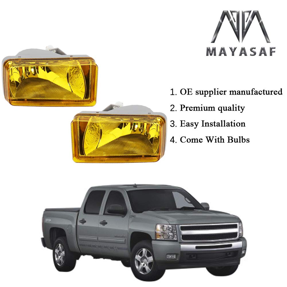 Mayasaf Amber Lens Fog Light Pair Of Bumper Fog Lamp For Chevy 2007-14 Silverado/Suburban/Avalanche/Tahoe, For Gmc 2007-14 Sierra/Yukon, 2007-08 Escalade