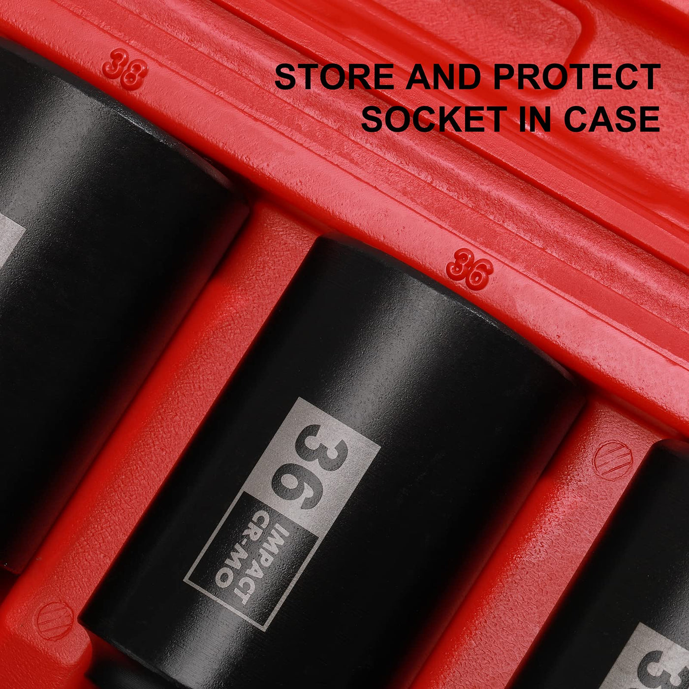 Q: What type of storage does the Mayouko socket set come with?A: The Mayouko 8PCS socket set includes a durable blow-molded carrying case that facilitates easy transportation and safe storage, with each slot marked for corresponding sizes.