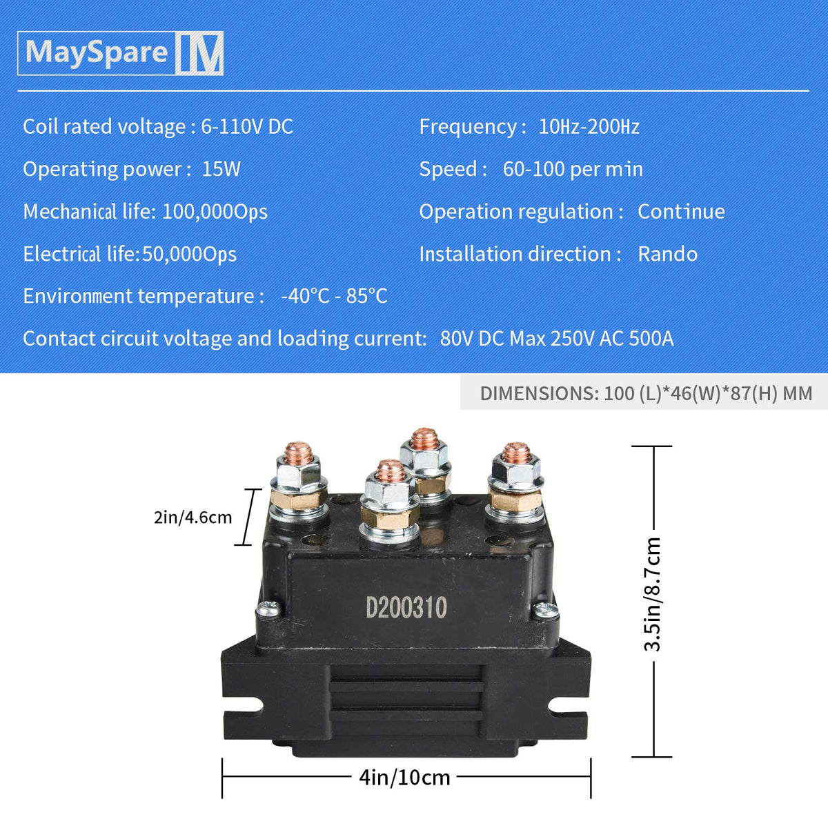 Mayspare 12V 500A Winch Solenoid Relay For 8000-15000Lb Atv Ut Winch Control