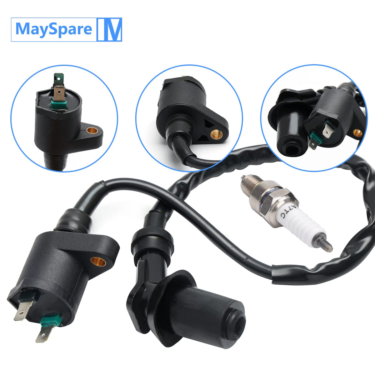 Mayspare Ignition Coil + Spark Plug Compatible With Gy6 50Cc 150Cc 125Cc 150Cc Atv Moped Scooter Go Kart High Performance Racing Ignition Coil
