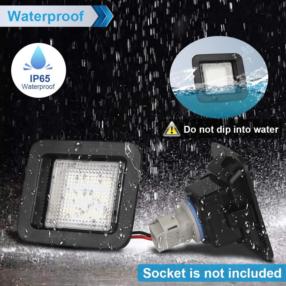 These LED License Plate Lights kit is a quick and easy way to dress up your vehicle and provide a brighter visibility on license plate. In just minutes you can replace the old license plate lights to make your vehicle with a modern look with our license plate lights. Please check compatibility table before ordering. Package Includes: 2 x LED License Plate Light (Socket is not included) Compatible Vehicle: 2015-2020 F150 2017-2020 F150 Raptor Note: Does not fit 2021 or 2021 up F150, Raptor Specifics and Features: Light Source: LED Light Count: 18 SMDs LED Color: White Color Temperature: 6000K Housing Color: Black Lens Color: Clear Plug & Play, direct replacement, no modification or trimming needed Non-polarity, no need to worry about negative and positive connections Warranty and Customer Service: 1. 1 Year manufacturer warranty since order purchase date. 2. Feel free to send email first if there's any issue before or after purchase. All emails will be replied within 24 hours. Your case will be taken seriously regardless of warranty period.