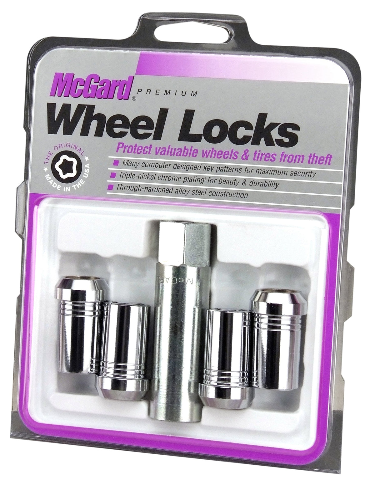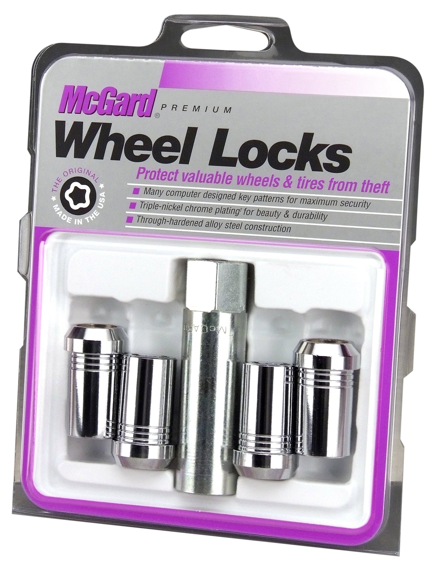 Protecting the world’s finest wheels and tires from theft since 1964. McGard manufactures wheel locks in the USA to meet or exceed OEM standards for safety and durability. Presently, McGard is an Original Equipment wheel lock supplier to over 30 car lines around the world. These easy-to-use, one-piece wheel locks function like regular lug nuts, but require a special key tool for installation and removal. The steel collar on the user friendly key guides the key into the lock pattern. The collar holds the key in alignment for easy installation and removal. The computer generated key designs allow for an infinite number of key patterns. The extra narrow pattern groove on the lock resists the intrusion of removal tools into the pattern. Every McGard wheel lock is fully machined from restricted chemistry steel made specifically for McGard and through-hardened for its unsurpassed level of security. McGard’s plating process includes three layers of nickel and one layer of microporous chrome producing a superior finish while protecting against rust. For use on Tuner wheels or wheels with very small lug nut holes. For alloy wheels only. This product may contain globally sourced materials/components.