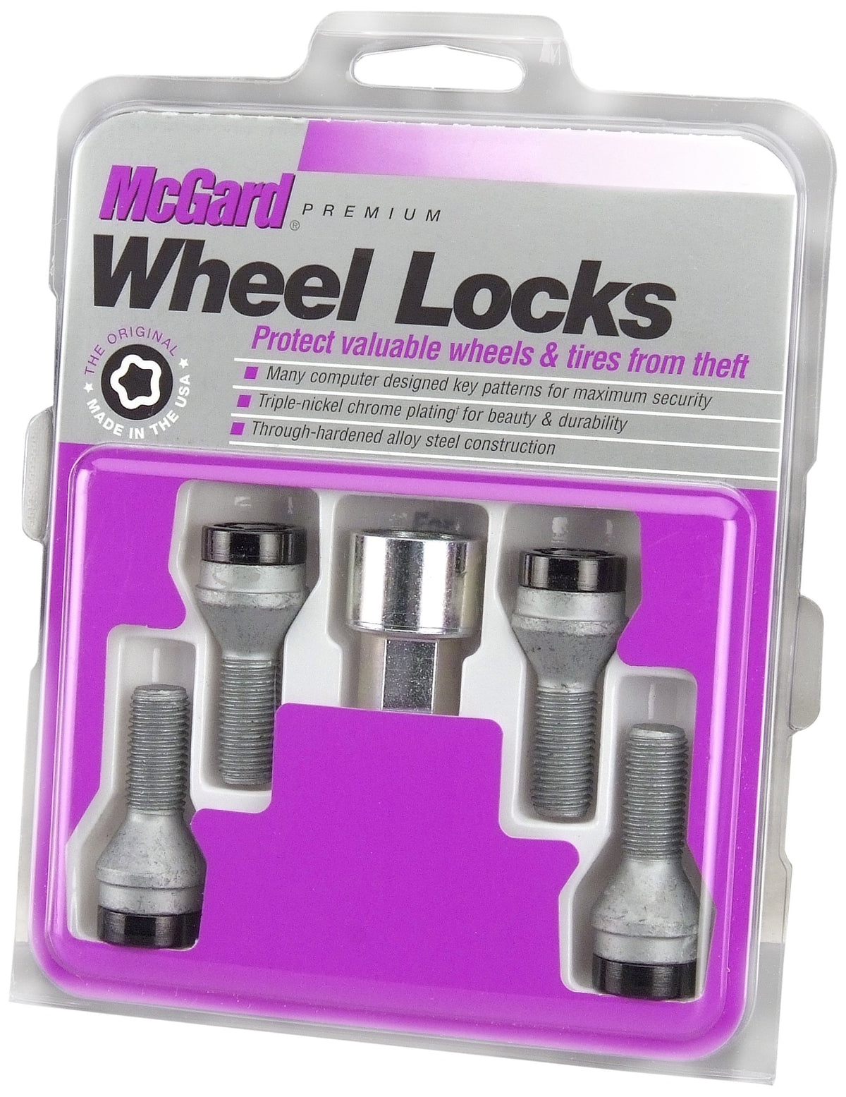 Protecting the world’s finest wheels and tires from theft since 1964. Wheel Lock bolts are designed in USA and manufactured in EU and USA. Presently, McGard is an Original Equipment wheel lock supplier to over 30 car lines around the world. These easy-to-use wheel locks function like regular lug bolts, but require a special key tool for installation and removal. The steel collar on the user friendly key guides the key into the lock pattern. The collar holds the key in alignment for easy installation and removal. The computer generated key designs allow for an infinite number of key patterns. The extra narrow pattern groove on the lock resists the intrusion of removal tools into the pattern. Every McGard wheel lock utilizes fully machined, restricted chemistry steel made specifically for McGard and through-hardened for its unsurpassed level of security. McGard's plating process includes three layers of nickel and one layer of microporous chrome/black producing a superior finish while protecting against rust. The bolt stem has a dacromet coating to meet O.E.M. standards. For use with steel or aluminum wheels with a tapered seat. This product may contain globally sourced materials/components.