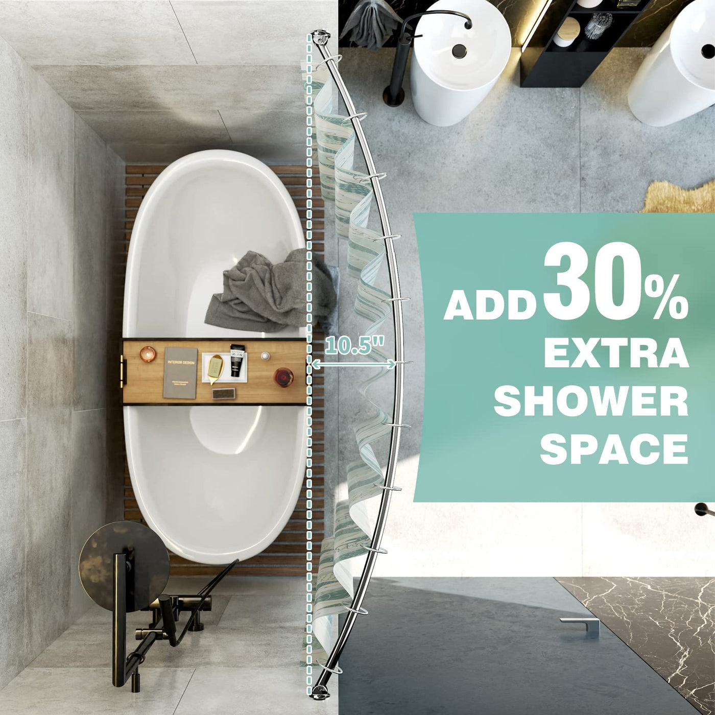 Q: What are the benefits of using a curved shower rod compared to a straight one?A: A curved shower rod, like the Mcrbeay model, provides an additional 10.5 inches of elbow space compared to traditional straight rods, enhancing comfort and space in your shower.