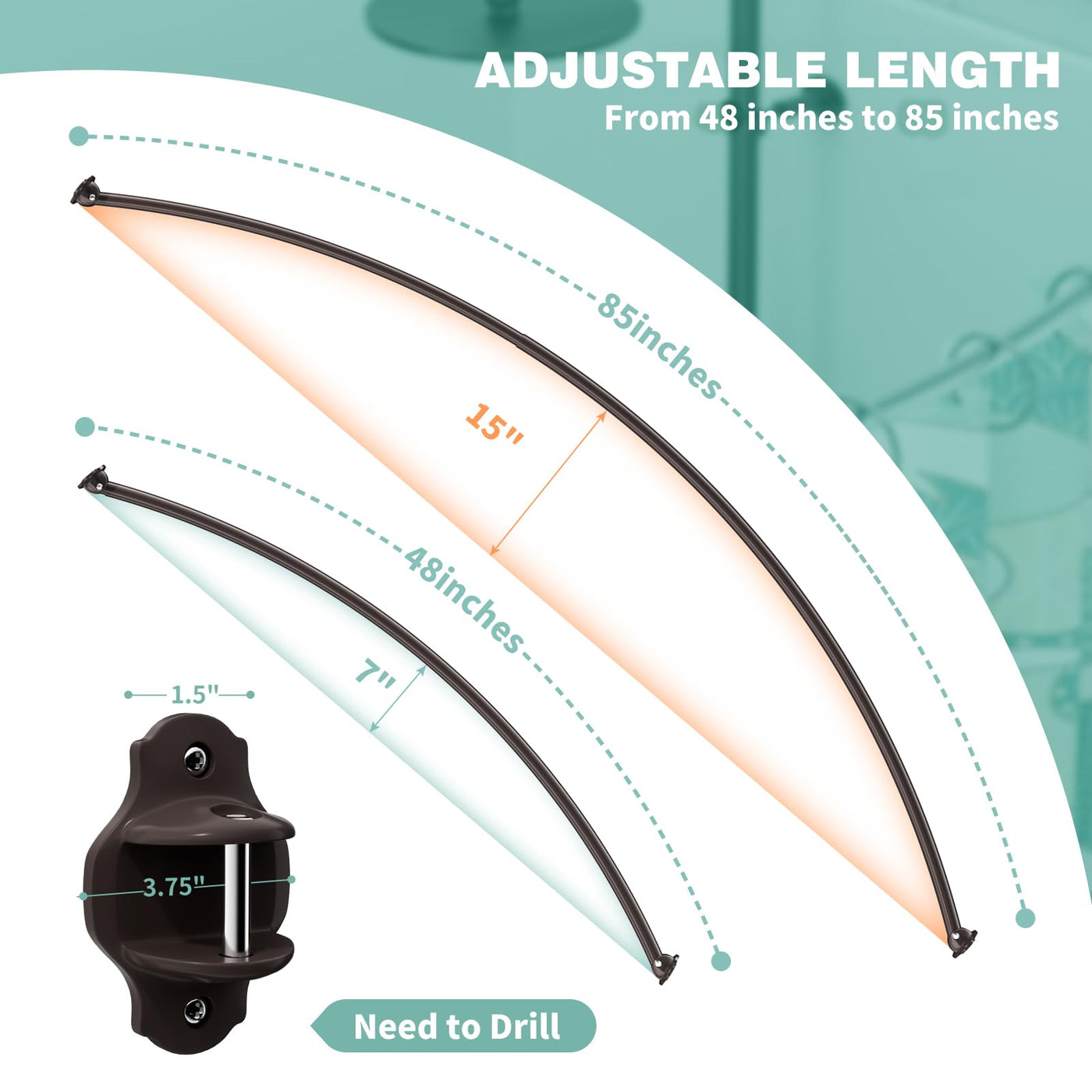 Q: What is the maximum and minimum length of the Mcrbeay Curved Shower Curtain Rod?A: The Mcrbeay Curved Shower Curtain Rod is adjustable and can be extended between 48 to 85 inches, making it suitable for various bathroom sizes.