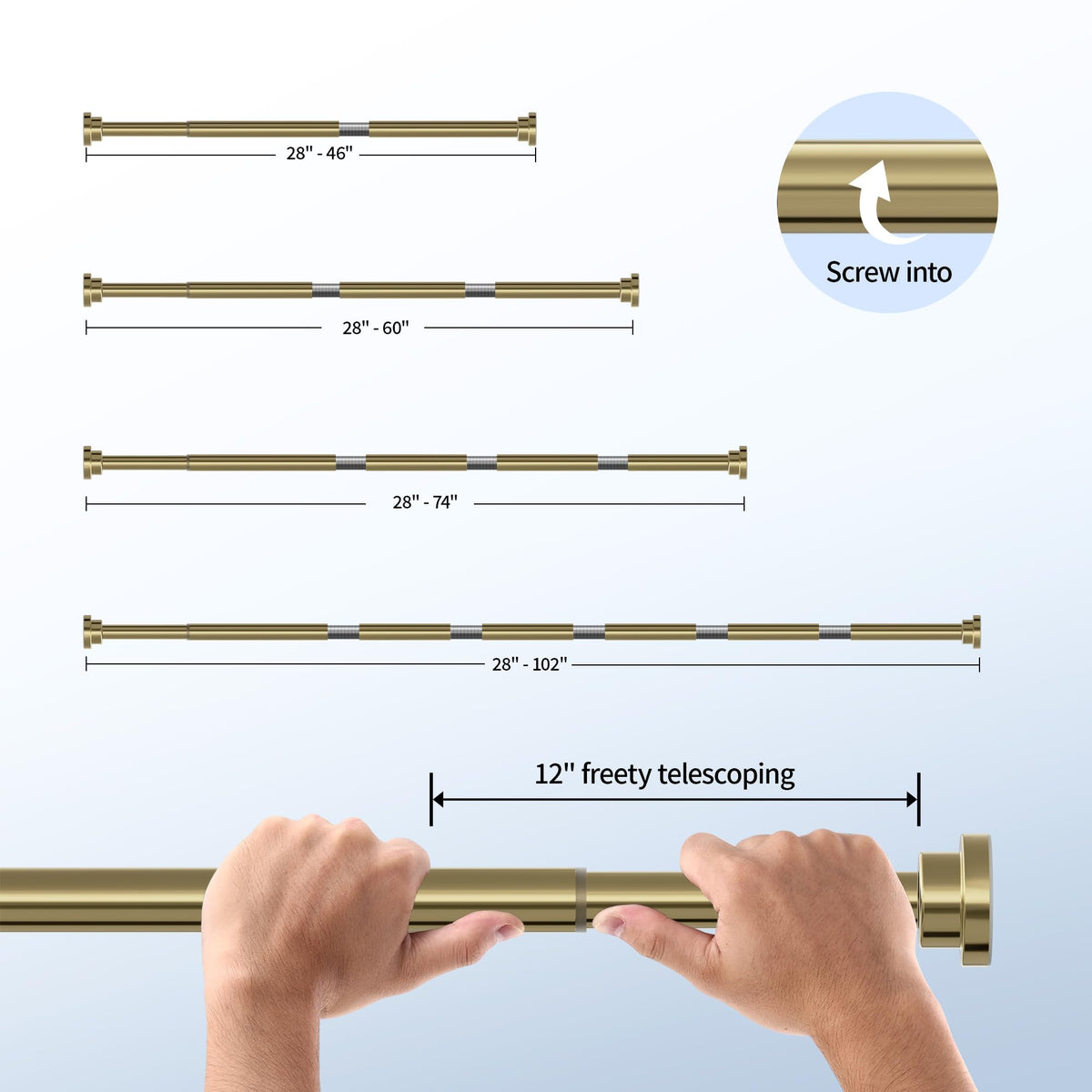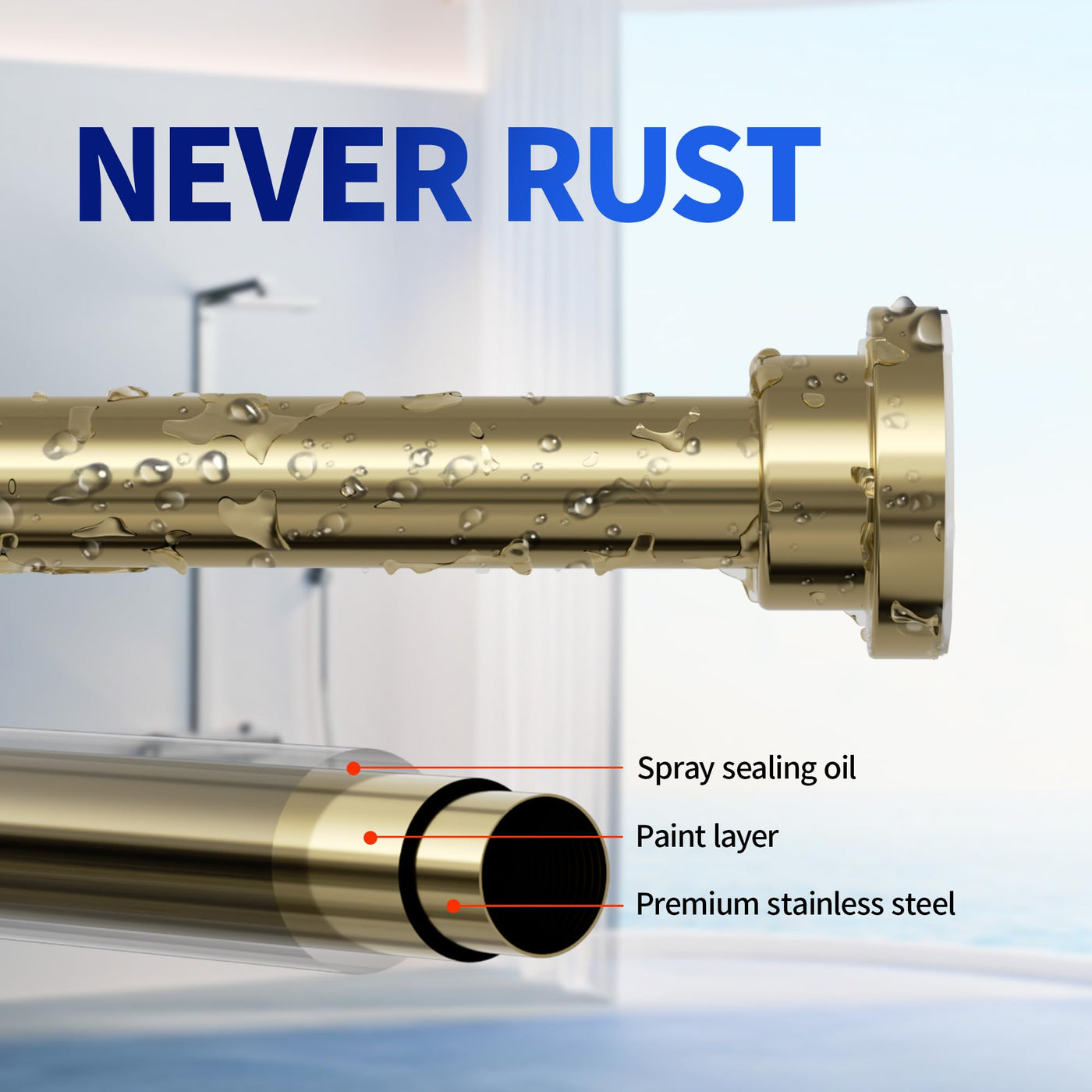 Mcrbeay Shower Curtain Rod, 1' Diameter Heavy Duty Tension Shower Rod, Non Slip Adjustable 28-102 Inch No Drilling Shower Curtain Rods Spring Tension For Bathroom, Shower Stall, No Rust, Chrome Gold