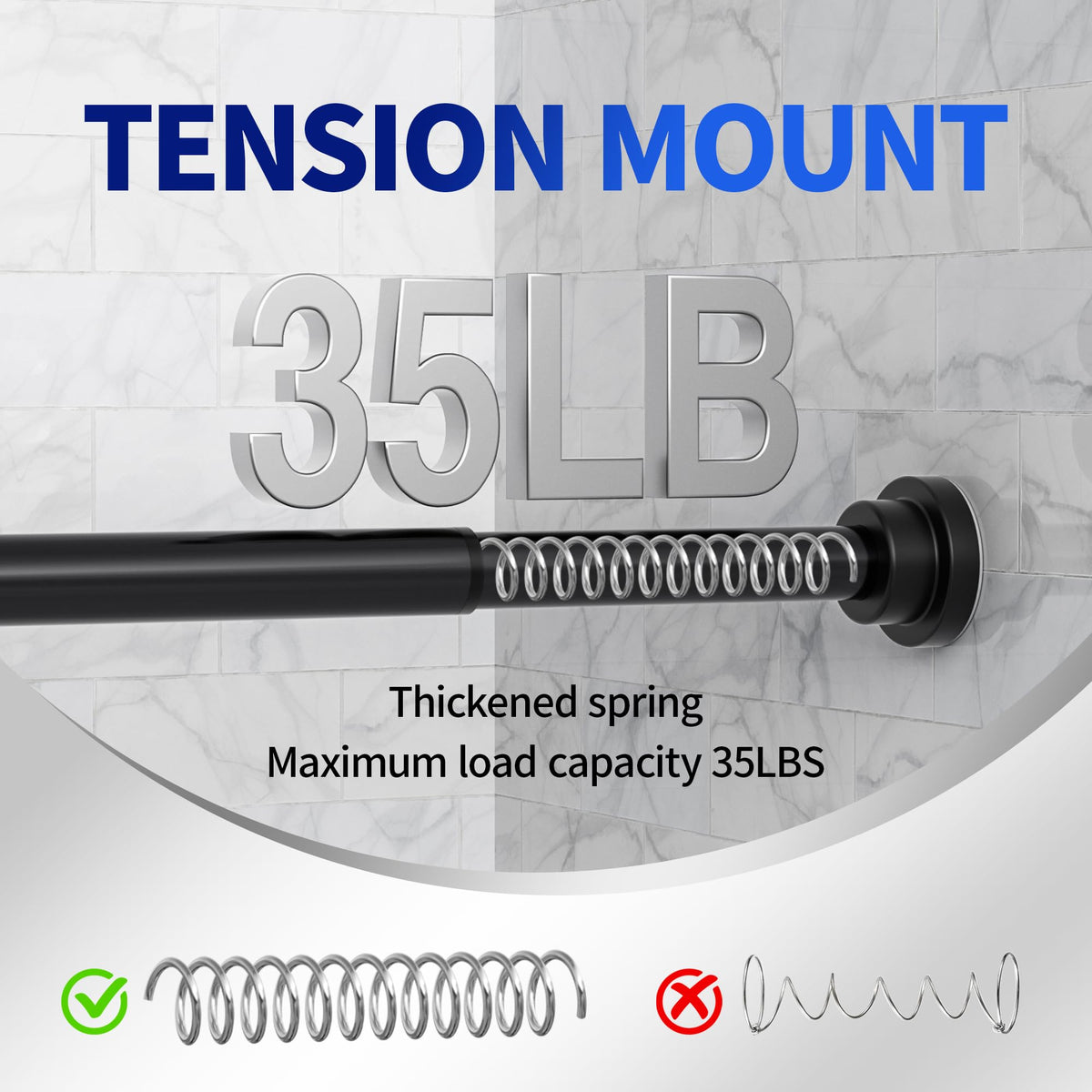 Mcrbeay Shower Curtain Rod, 1' Diameter Heavy Duty Tension Shower Rod, Non Slip Adjustable 28-74 Inch No Drilling Shower Curtain Rods Spring Tension For Bathroom, Shower Stall, No Rust, Black