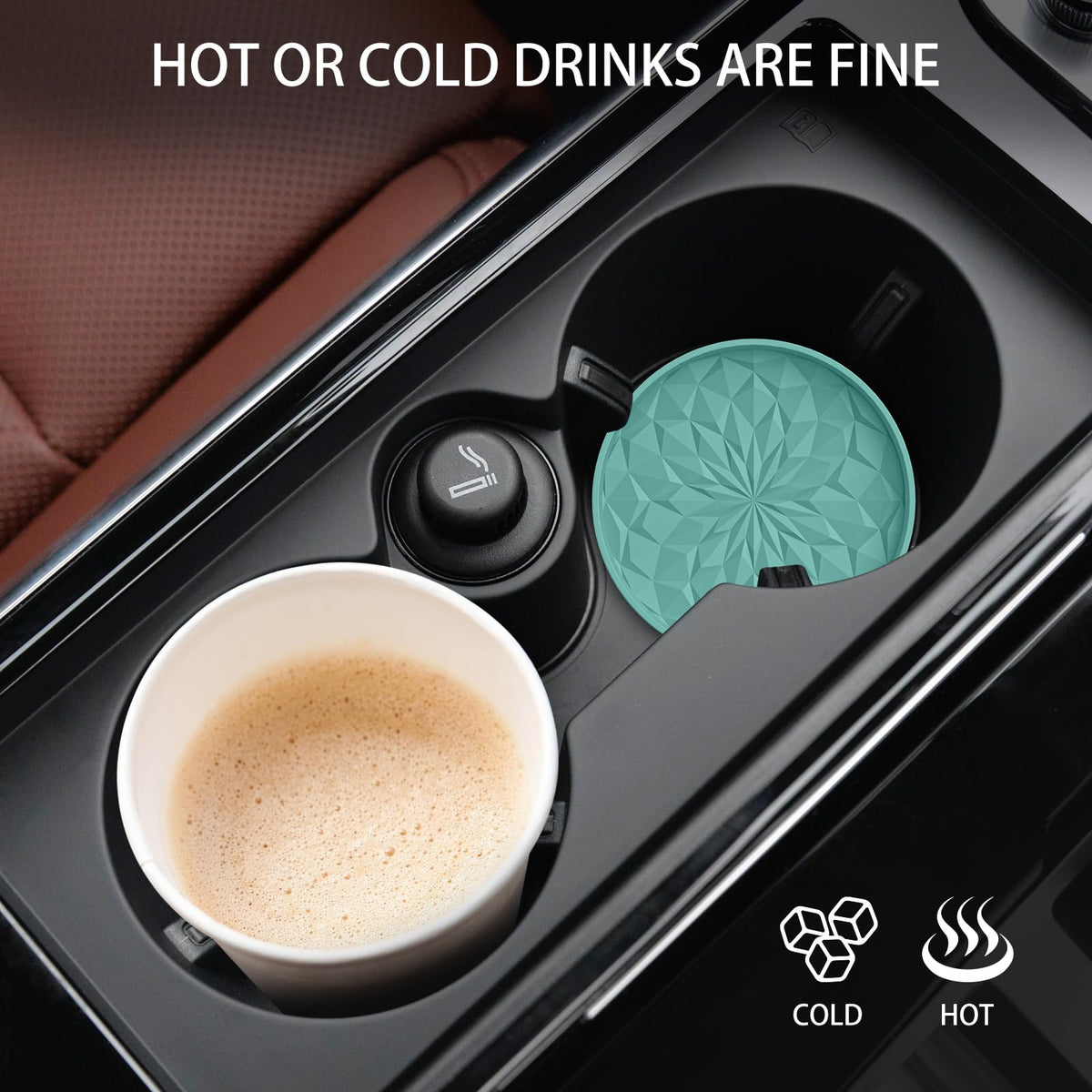 Me.Fan Car Cup Coaster [4 Pack] Silicone Car Coasters / Cup Mats - 2.75In Universal Non-Slip Recessed Car Interior Accessories - Car Cup Holder Insert Coasters Teal Blue