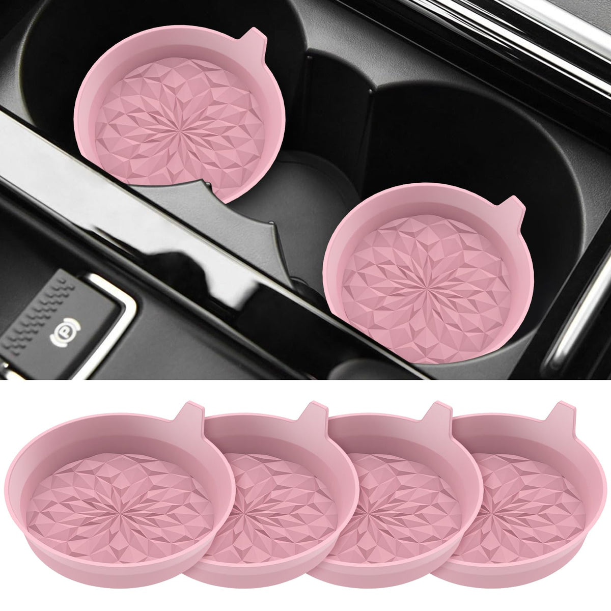 ME.FAN Car Cup Coasters [4 Pack] Silicone Car Coasters / Automotive Cup Mats - Universal Non-Slip Recessed Car Interior Accessories - Car Cup Holder Insert Coasters Dusty Rose