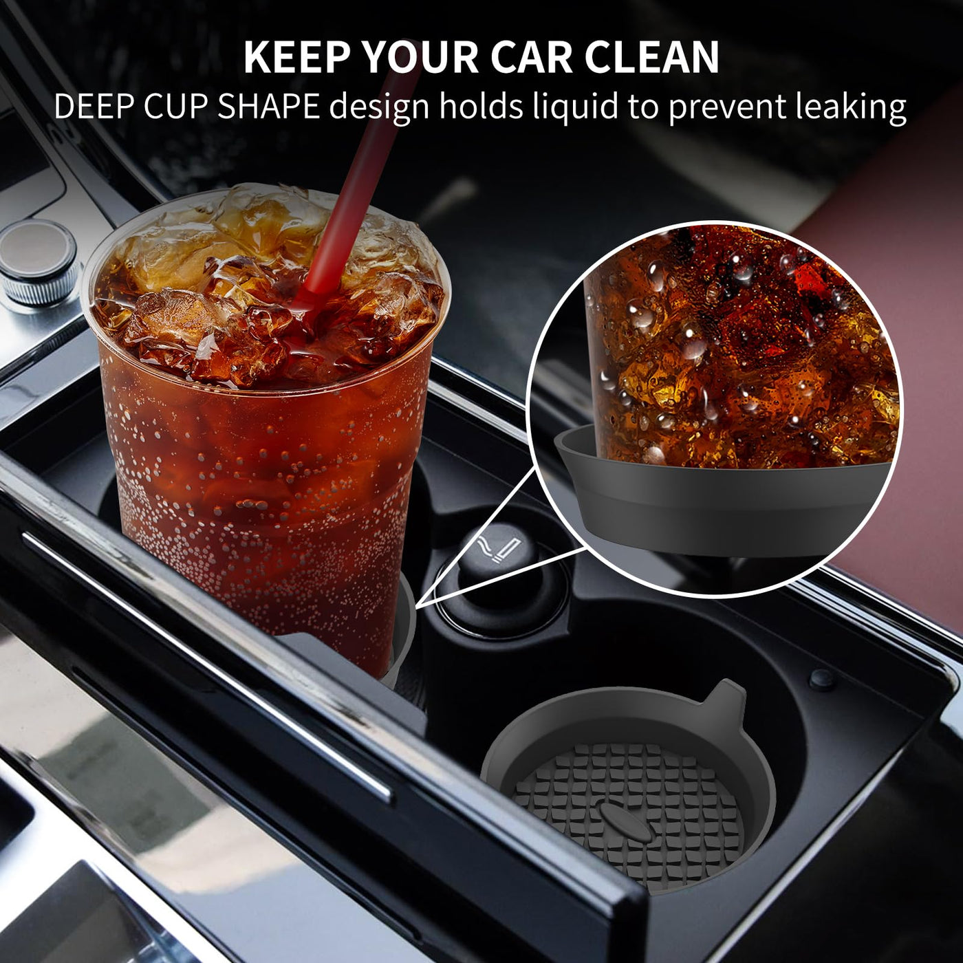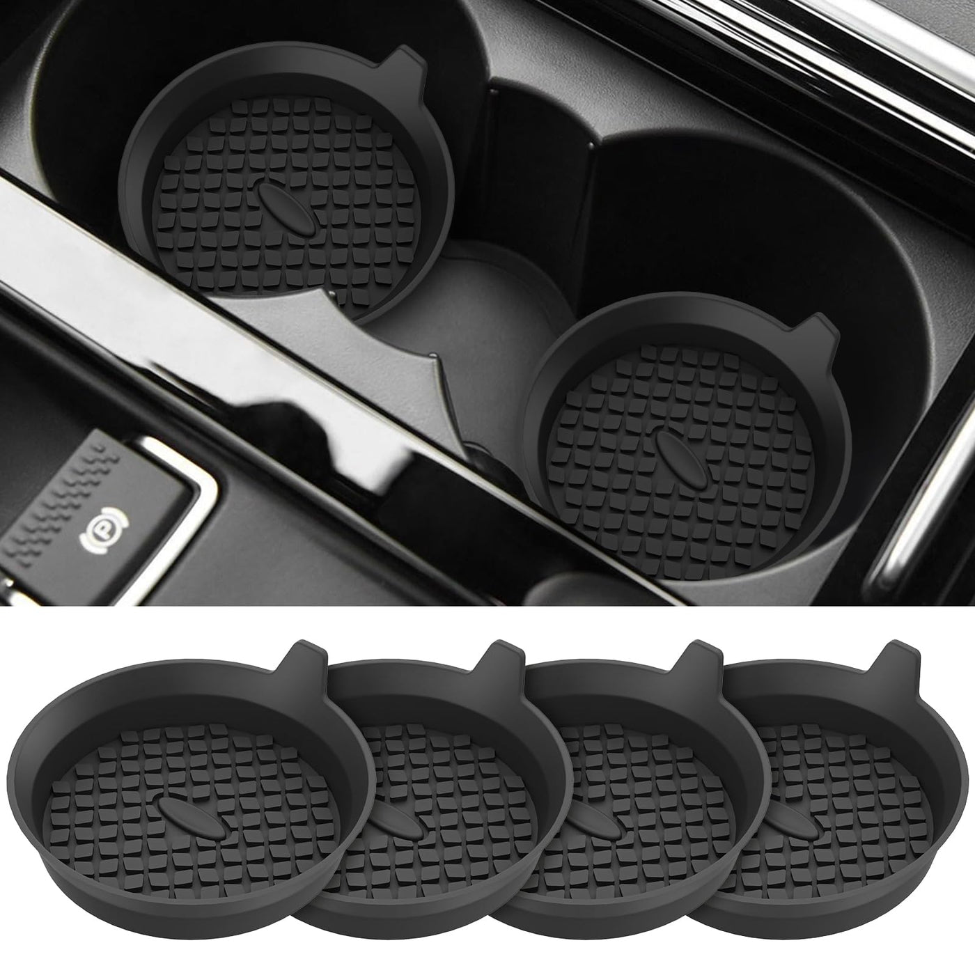 ME.FAN Car Coasters [4 Pack] Silicone Car Cup Coasters / Cup Mats - Universal Non-Slip Recessed Car Interior Accessories - Car Cup Holder Insert Coasters Black