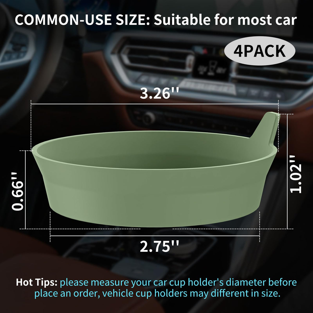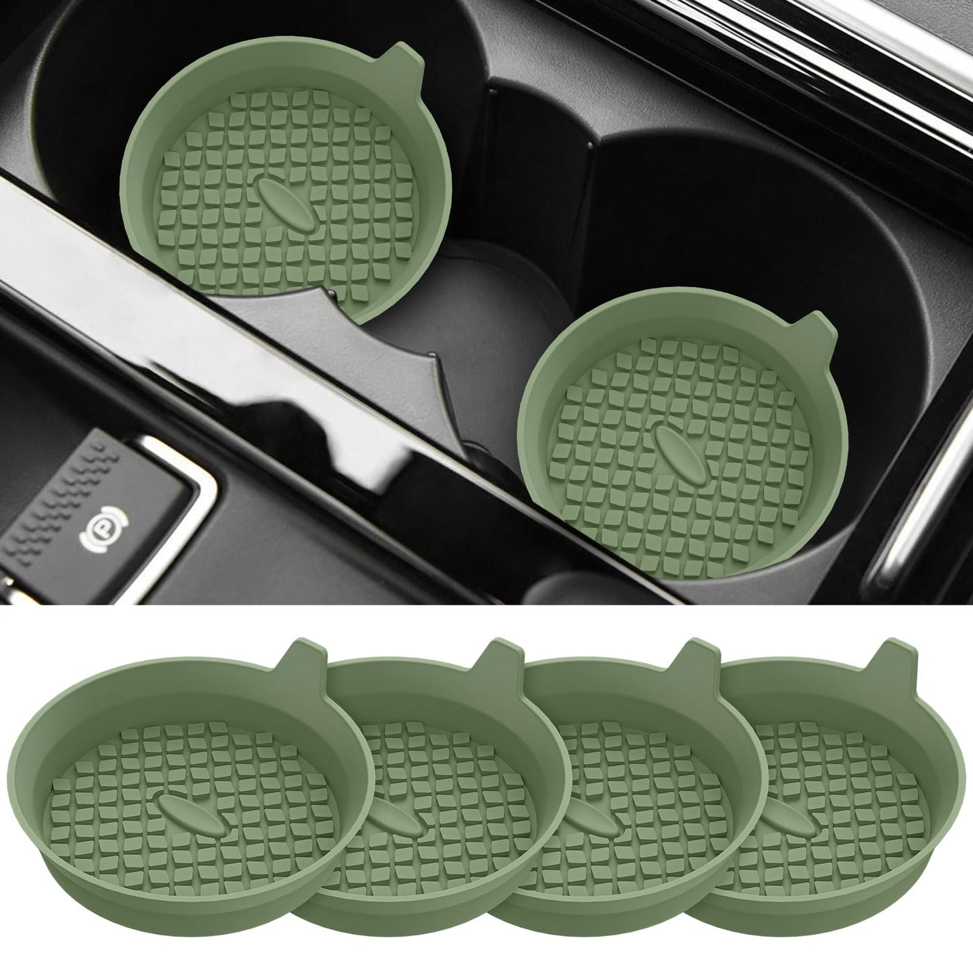 ME.FAN Car Coasters [4 Pack] Silicone Car Cup Coasters / Cup Mats - Universal Non-Slip Recessed Car Interior Accessories - Car Cup Holder Insert Coasters Olive Green