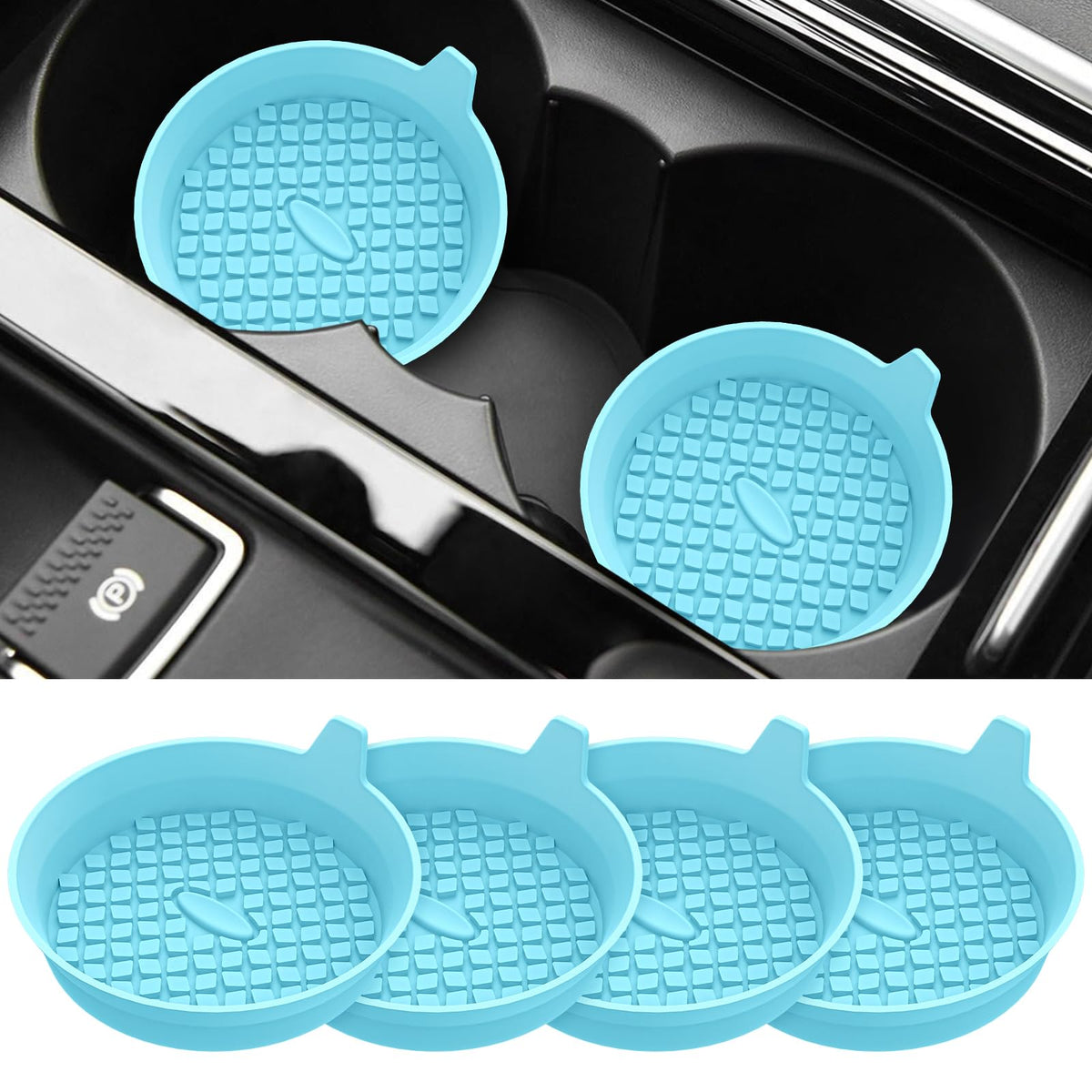 ME.FAN Car Coasters [4 Pack] Silicone Car Cup Coasters / Cup Mats - Universal Non-Slip Recessed Car Interior Accessories - Car Cup Holder Insert Coasters Sky Blue