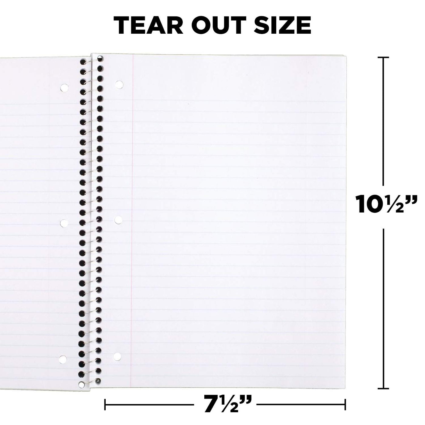 Q: What is the size of the notebook when sheets are torn out?A: When the sheets are torn out, they measure 10-1/2 inches by 7-1/2 inches. The overall notebook size is 10-1/2 inches by 8 inches, ensuring a compact fit for easy carrying.