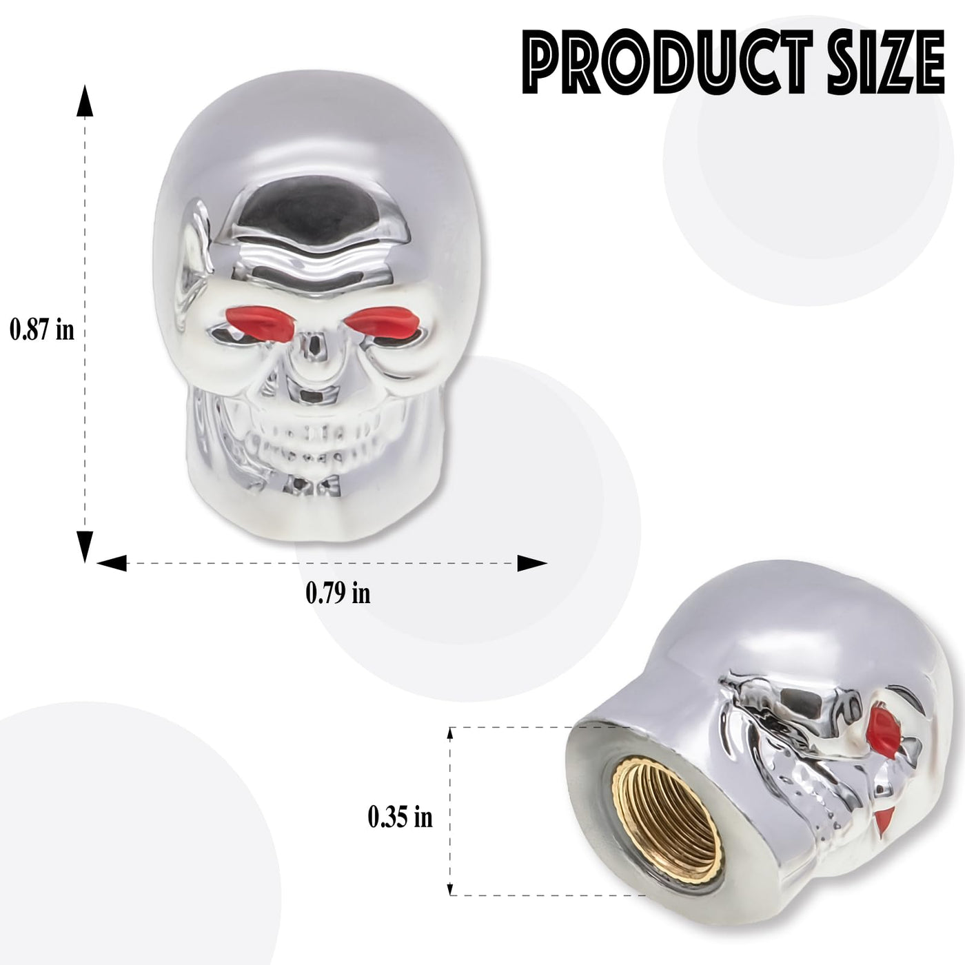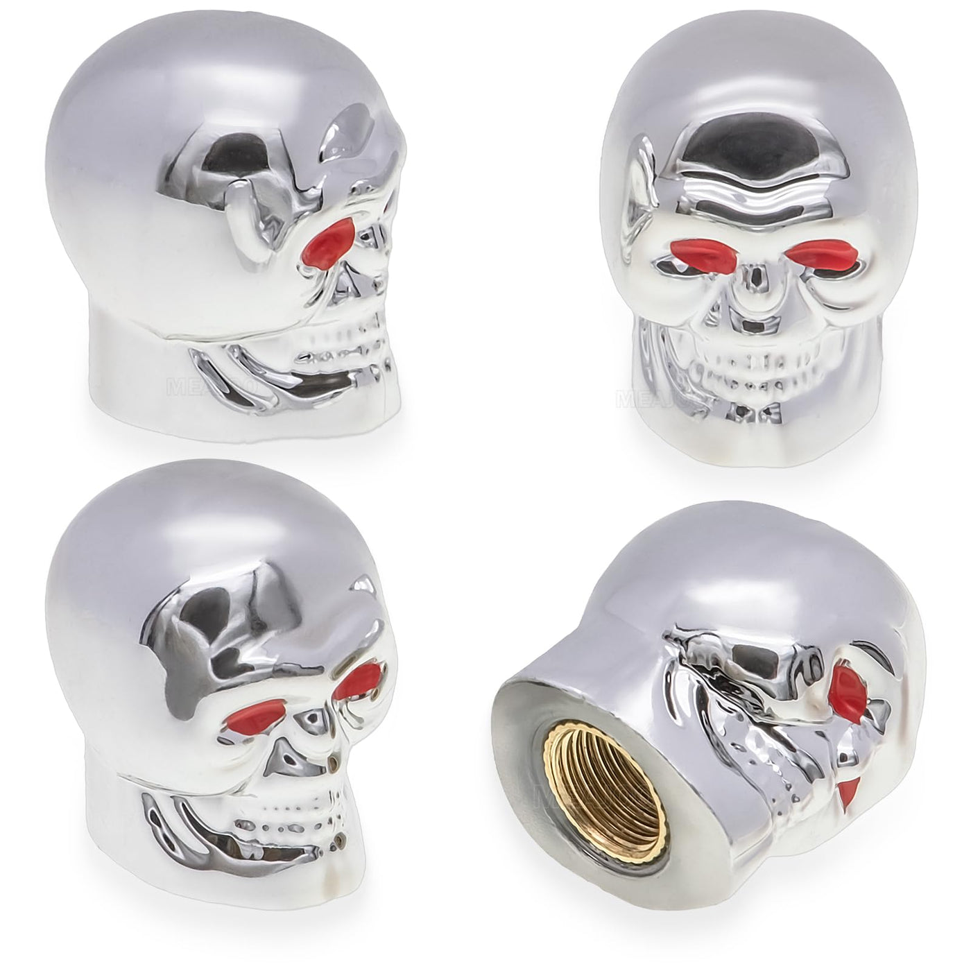 Meajoo 4Pcs Skull Style Tire Valve Stem Caps, With O Rubber Ring, Universal Copper Core Tire Valve Stem Covers For Cars, Suv, Tr