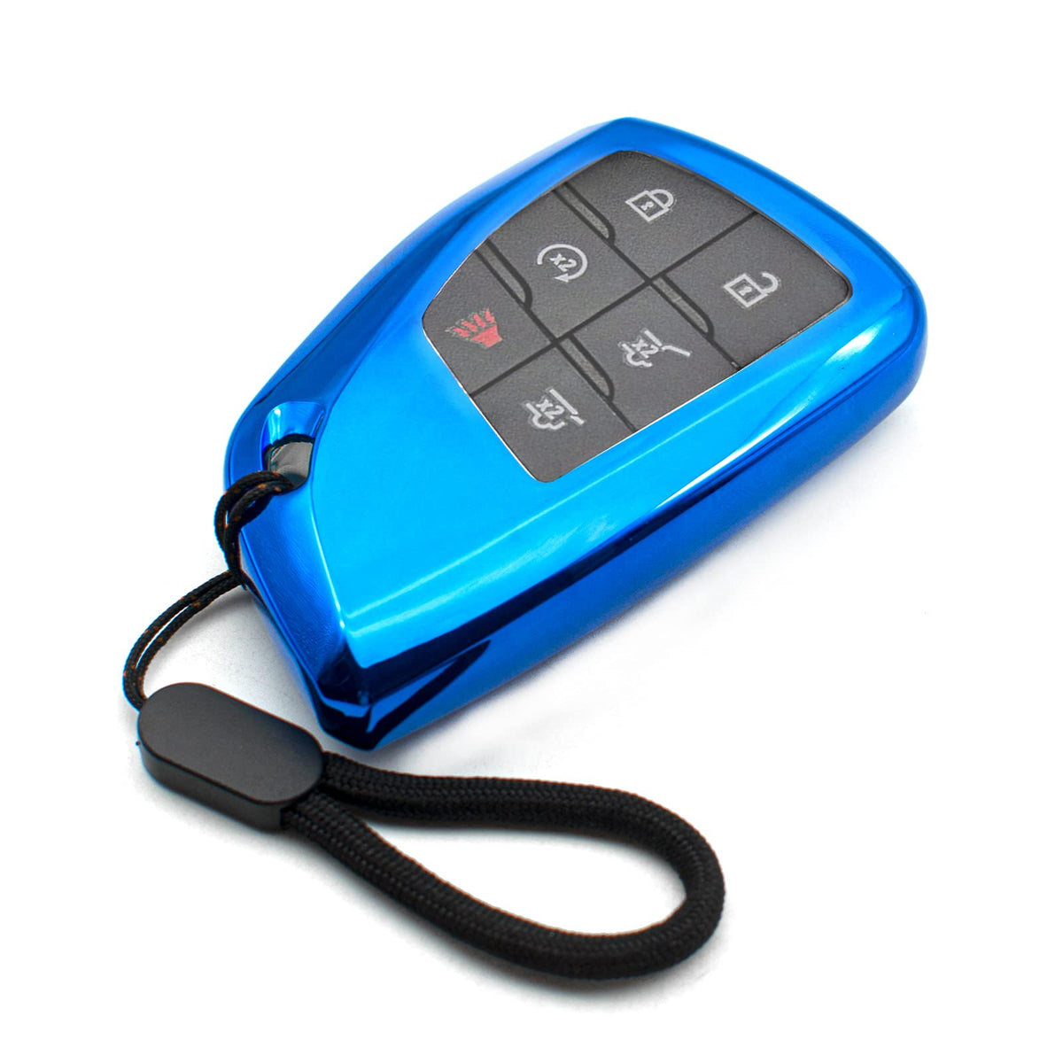 About the TPU Car Key Fob Case Cover for 2022 2021 GMC Yukon Chevy Chevrolet Suburban Tahoe Smart Key, Blue Color High-quality and soft TPU Fit like a glove with precise button position and shape Great key fob protection, durable, removable and cleanable Distinguishable with mirrory looking, easier to find your key Decorate your key fob, make fob key appearance to be fashionable and stylish Sturdy soft nylon cord key string helps you organize other keys, small accessories or parts. Note: For some models, it will not allow you to use the valet key if you don't pull off the cover. As a reward for yourself, and also as a perfect gift for yourself, family and friends. Special Note: Please compare the 2nd picture with your key and DOUBLE CHECK your key shape before purchase this item. With different light and monitor, there may be a slight color difference. Package included: 1 pcs TPU car key cover (Note: Not included the key fob) Bonus Item: 1 pcs nylon cord key string
