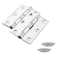 Medsuo 2 Sets Door Hinges 3 Inch Stainless Steel Folding Butt Hinges With 12Pcs Stainless Steel Screws For Door Case Lid Wooden Box Chest (Silver)
