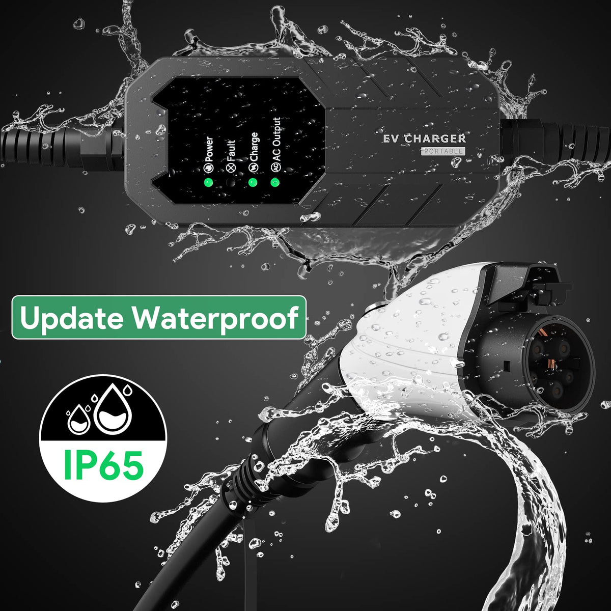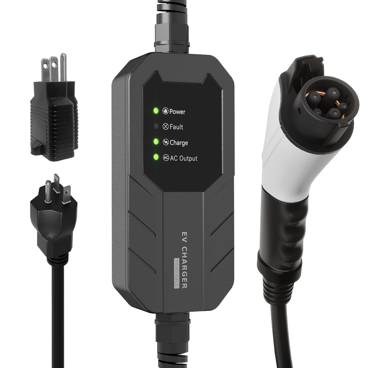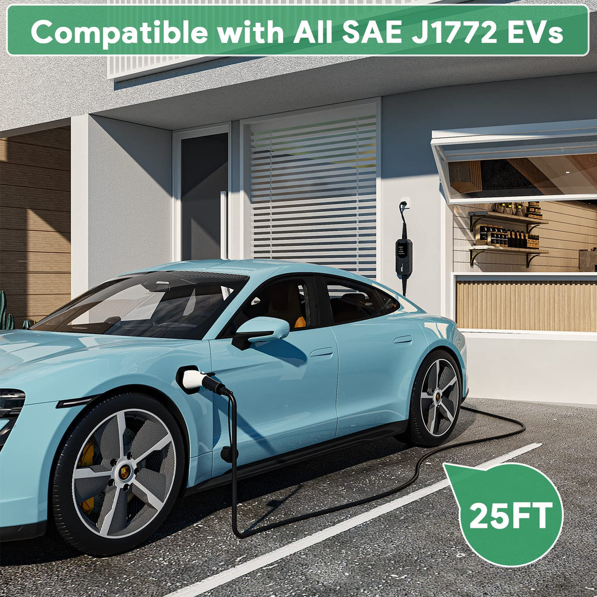 Megear Level 1-2 Ev Charger, 16A 25Ft Nema 6-20 Plug With Nema 5-15 Adapter Portable Electric Vehicle Charging Station