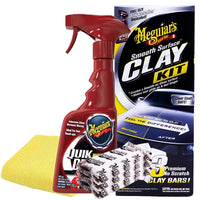 Q: What is included in the Meguiar's Smooth Surface Clay Kit?A: The kit includes three 60 gram premium clay bars, a 16 oz spray bottle of Quik Detailer Mist and Wipe, and a Supreme Shine Microfiber Towel, providing everything you need for effective claying.
