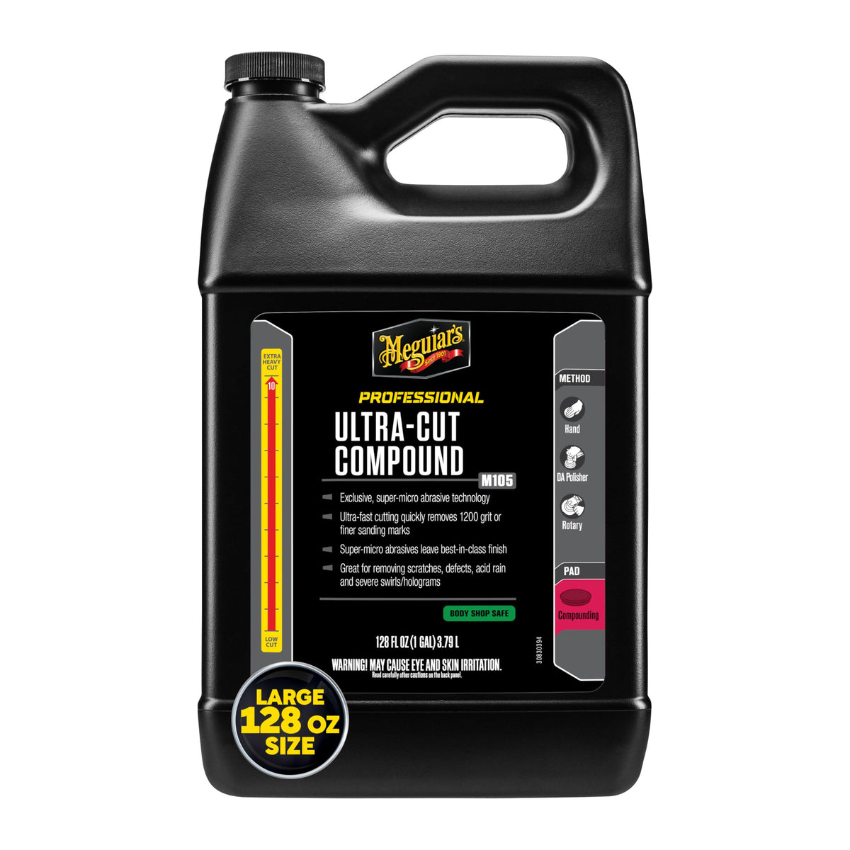 Q: How does Meguiar's M105 Ultra-Cut Compound remove defects?A: This compound utilizes exclusive super micro-abrasive technology which offers ultra-fast cutting ability to effectively remove scratches, severe swirls, holograms, and other paint defects, including 1200 grit sanding marks.
